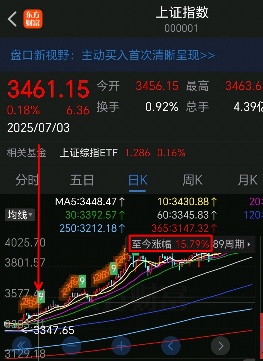 以7.3日高点计算,大盘指数涨了559点,平均涨幅15.79%。