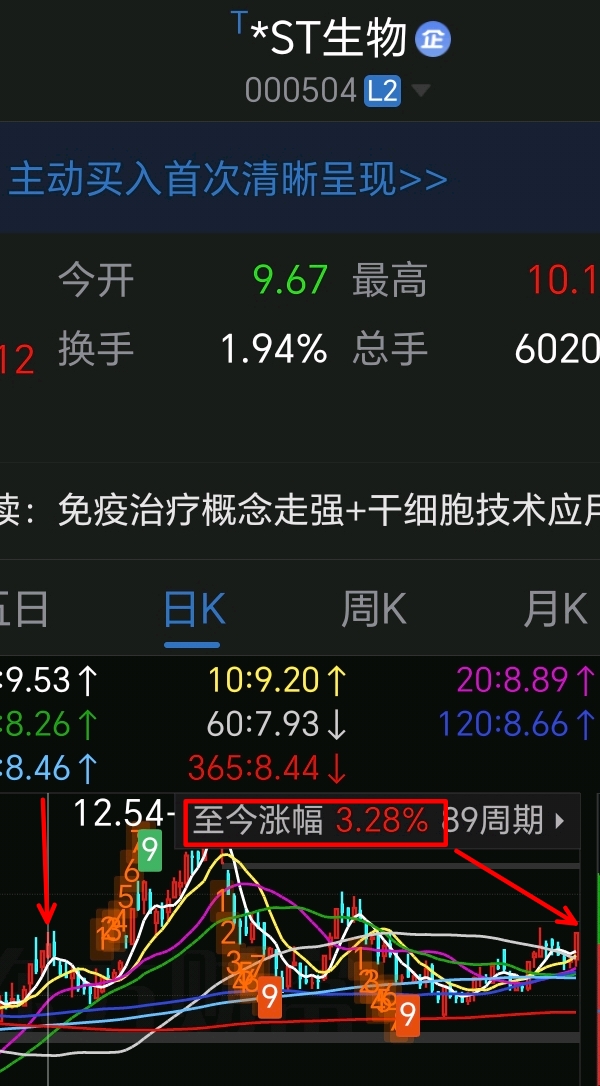 st生物涨幅为0%,今天涨停相当于才涨了3%。