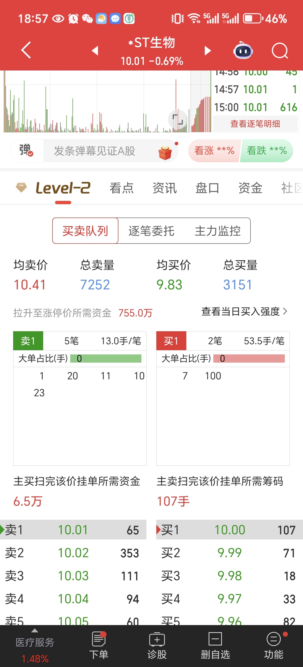 $*ST生物(SZ000504)$ 几百万就能拉涨停了,哪个大哥上