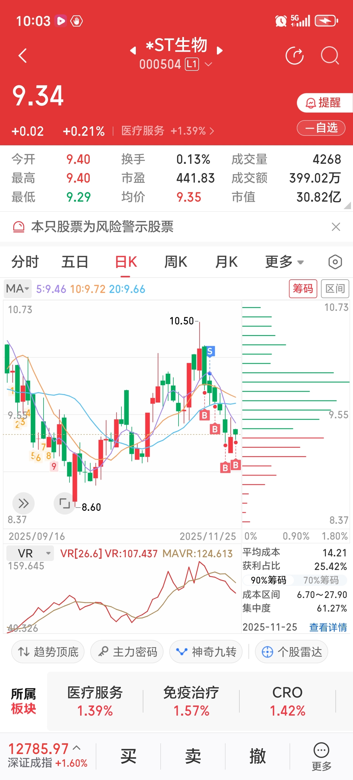 $*ST生物(SZ000504)$ 目标价买到破9全仓