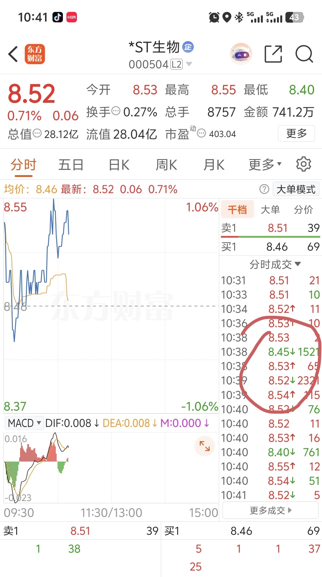 $*ST生物(SZ000504)$ 怎么回事,主力跑了?