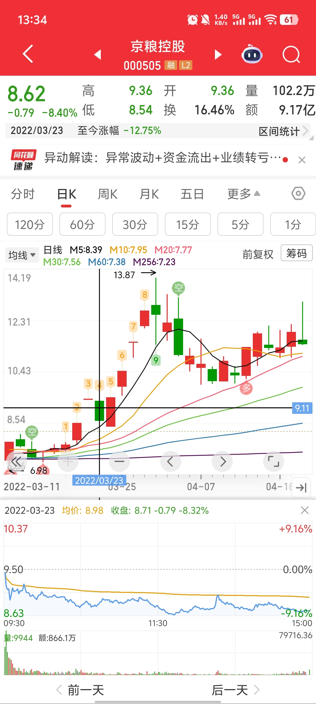 $京粮控股(SZ000505)$ 大资金实在回流,已经回流一半了,暴力洗盘后面还有主升浪。
