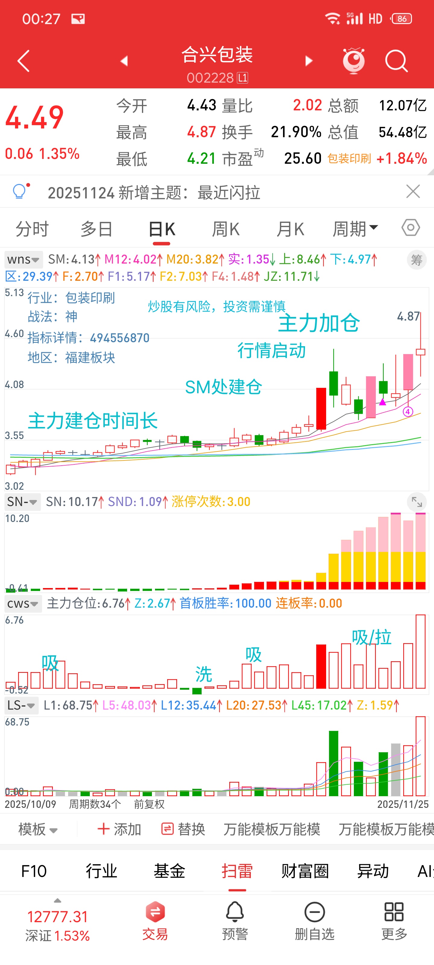 $合兴包装(SZ002228)$ 起步阶段,主力建仓时间是比较长的。这根小阳线有出货的可能。但大概率是洗盘。