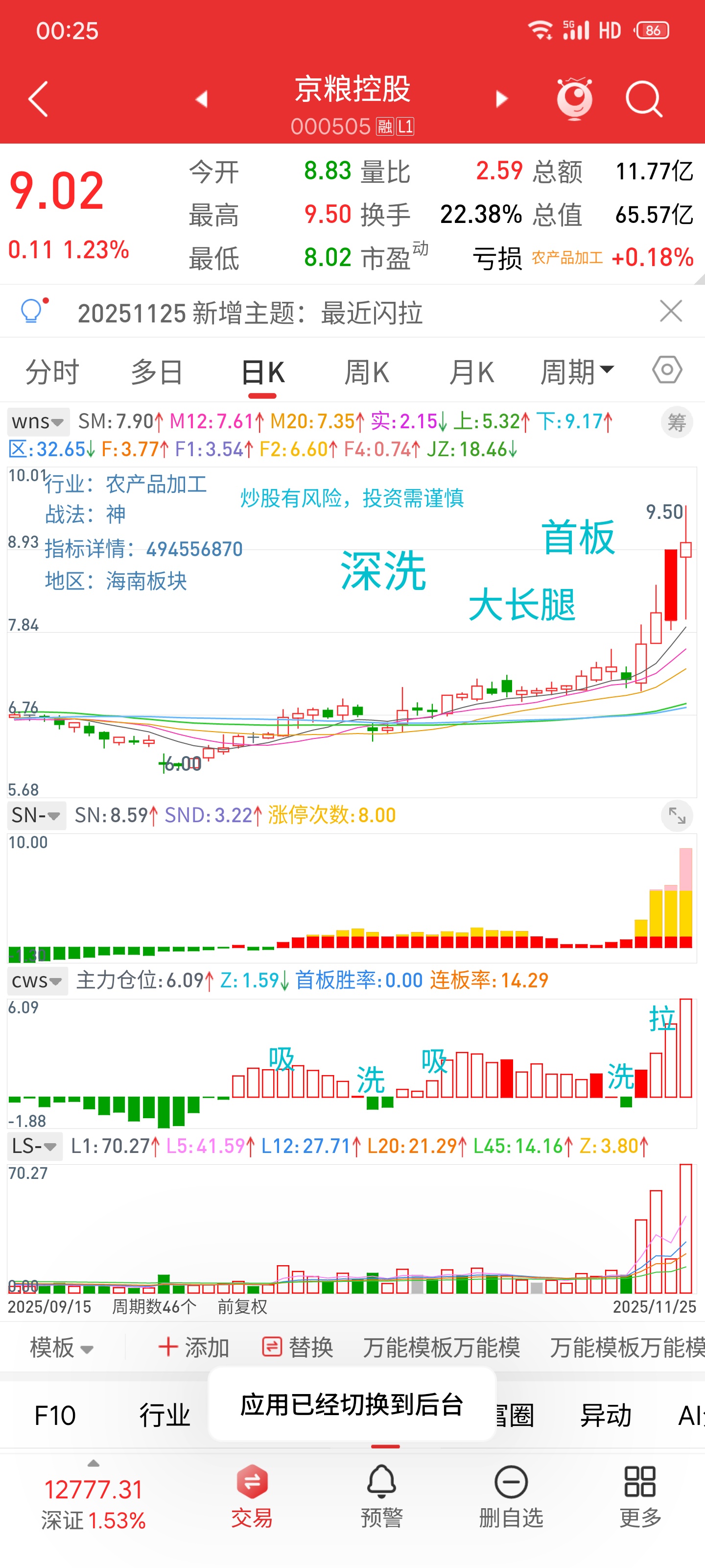 $京粮控股(SZ000505)$ 能从跌停板拉起来也很强了。这个大长腿大资金捡了不少便宜筹码。