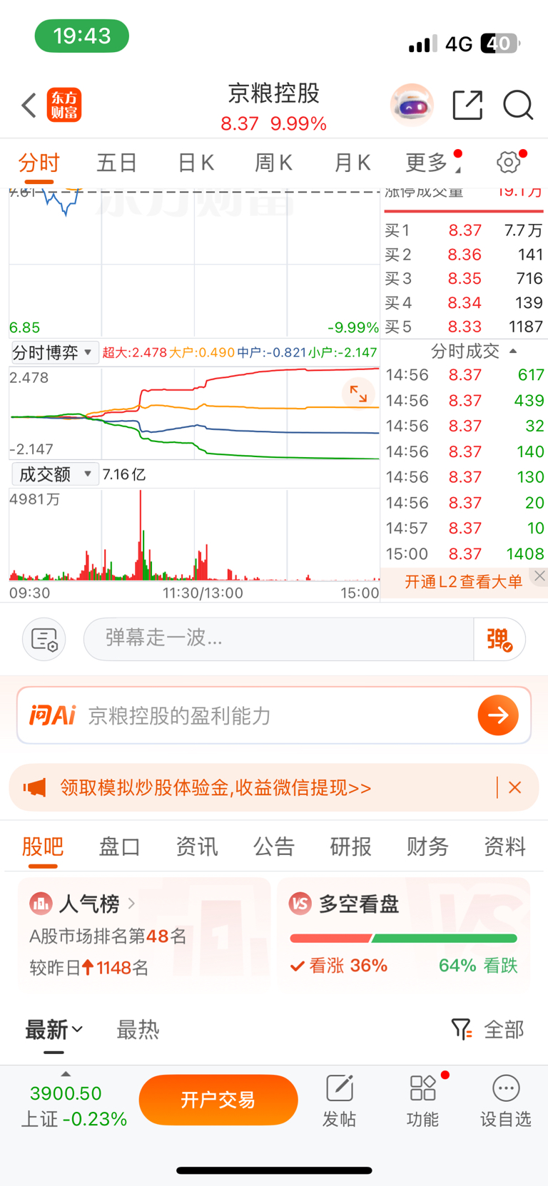 $京粮控股(SZ000505)$ 看涨才这一丢丢,估计洗掉了