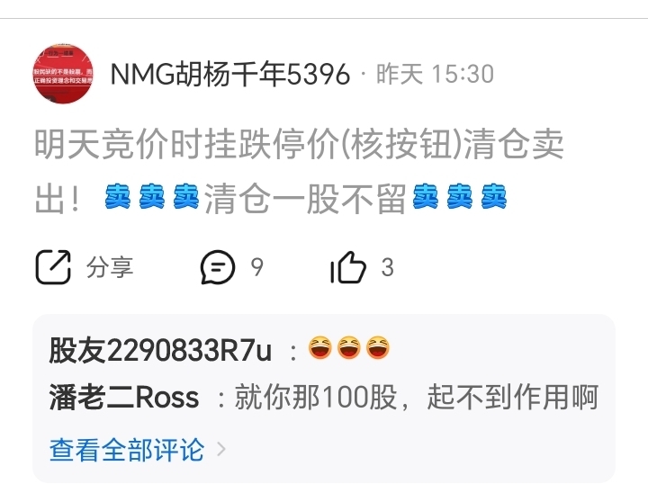 温馨提示: 1.根据《证券法》规定,禁止编造、传播虚假信息或者误导性信息,扰乱证券市场;2.用户在本社区发表的所有资料、言论等仅代表个人观点,与本网站立场无关,不对您构成任何投资建议。用户应基于自己的独立判断,自行决定证券投资并承担相应风险。《东方财富社区管理规定》
