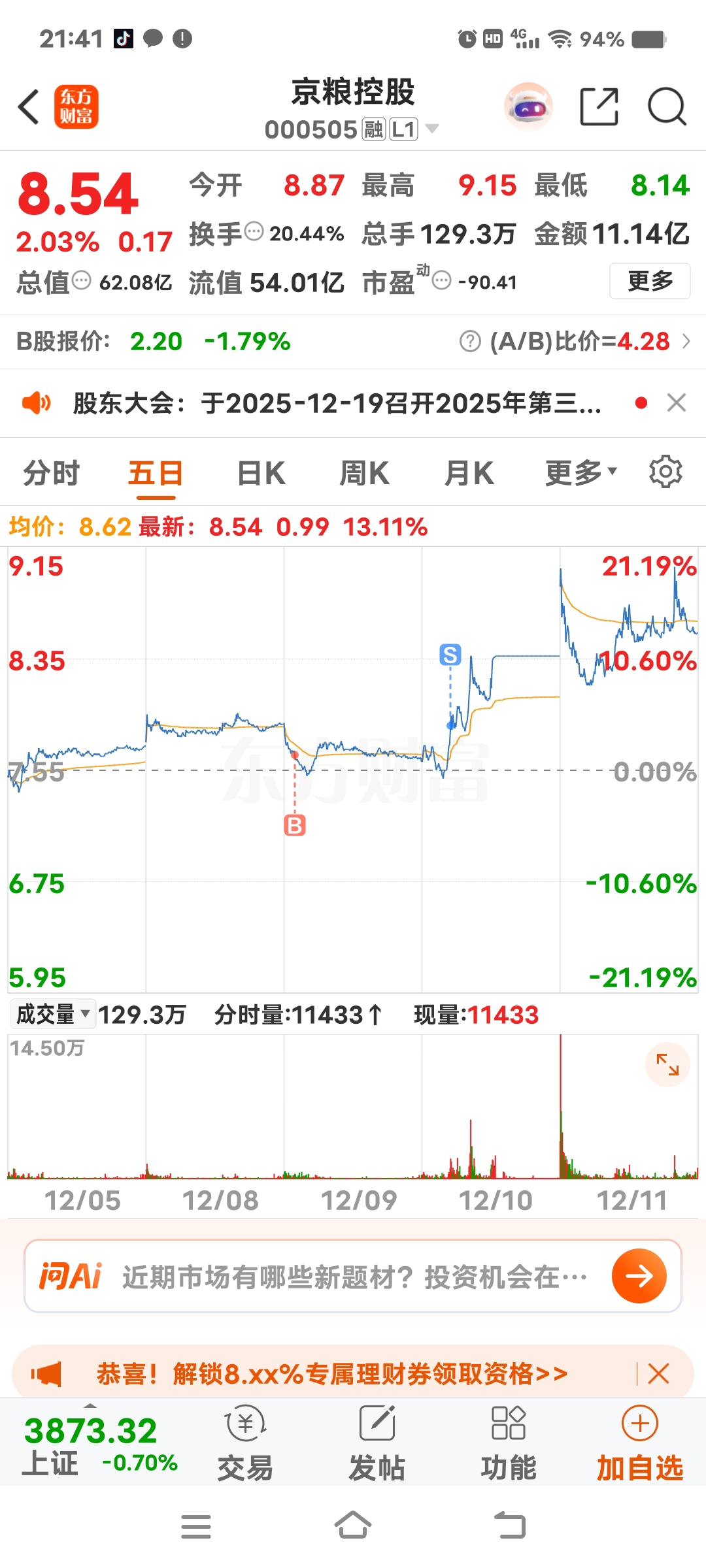 $京粮控股(SZ000505)$ 原来我都是精准的卖在涨停之前!
