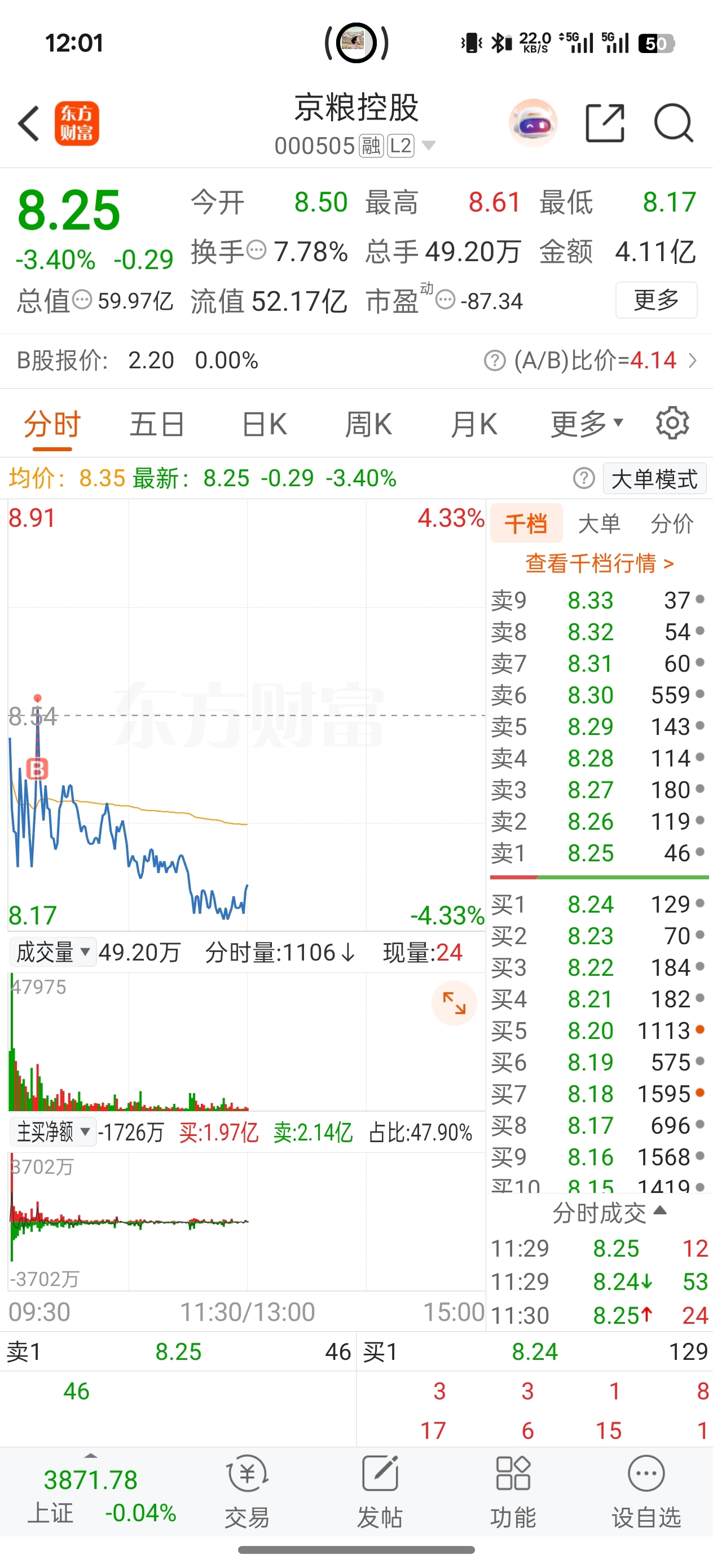 $京粮控股(SZ000505)$ 兄弟们,看见那个小尖尖吗,我被叉上面了