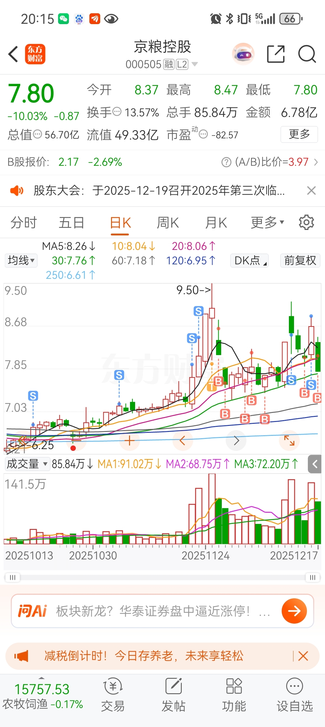 $京粮控股(SZ000505)$ 京粮老铁们,明天下跌摸7.3或收五日线之下就卧倒吧,中期趋势破坏,仓都不要补了,静待企稳再说。短线股友们就自求多福吧……上攻反包意味着今日洗盘成功,仍有不错涨幅,坚定持有
