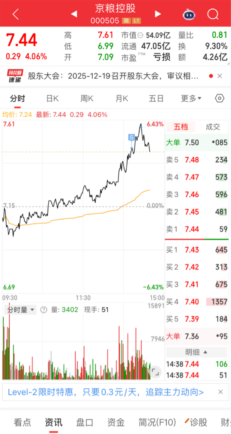 $京粮控股(SZ000505)$ 又是被我砸下来了?确定是杂毛,尾盘竞价全出