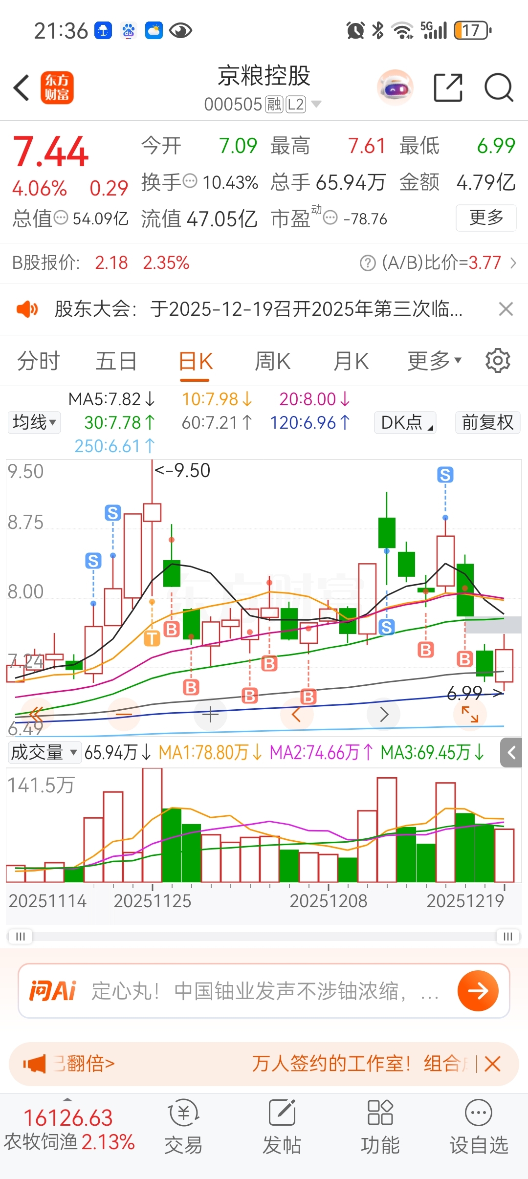 $京粮控股(SZ000505)$ 这位置尴尬,看不懂……管你涨跌,放弃这个波段,等你企稳再说