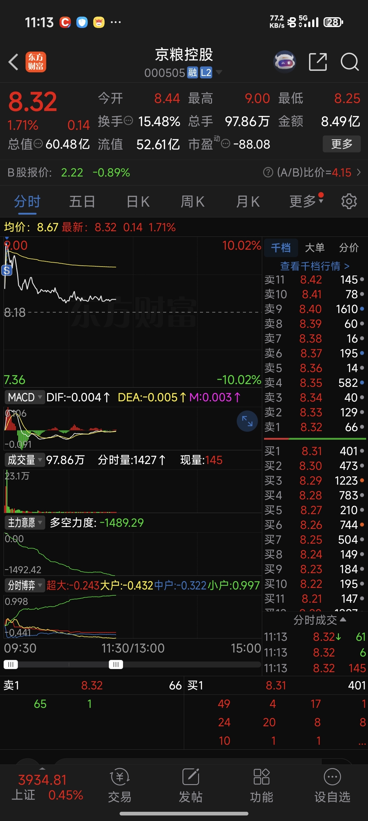 $京粮控股(SZ000505)$ 我已出仓,感觉良好