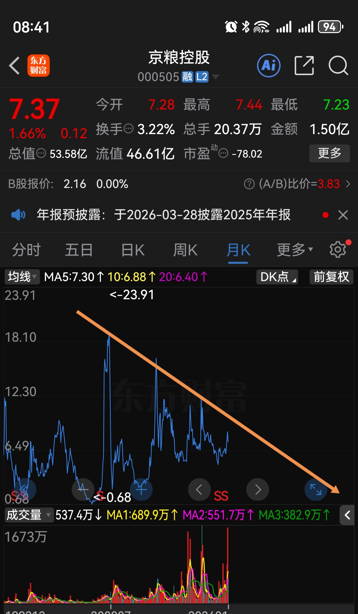 $京粮控股(SZ000505)$ 牛比,按照这种玩法,0.5很快了