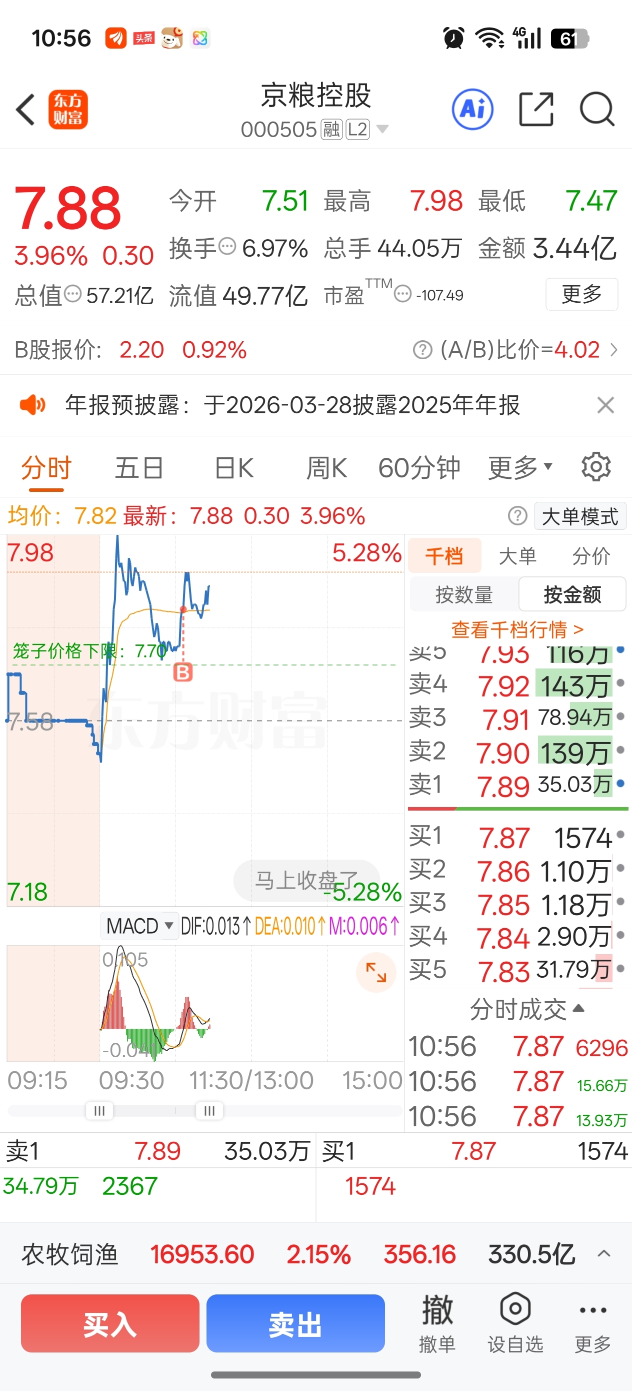 $京粮控股(SZ000505)$ 速来,别惦记我两百股