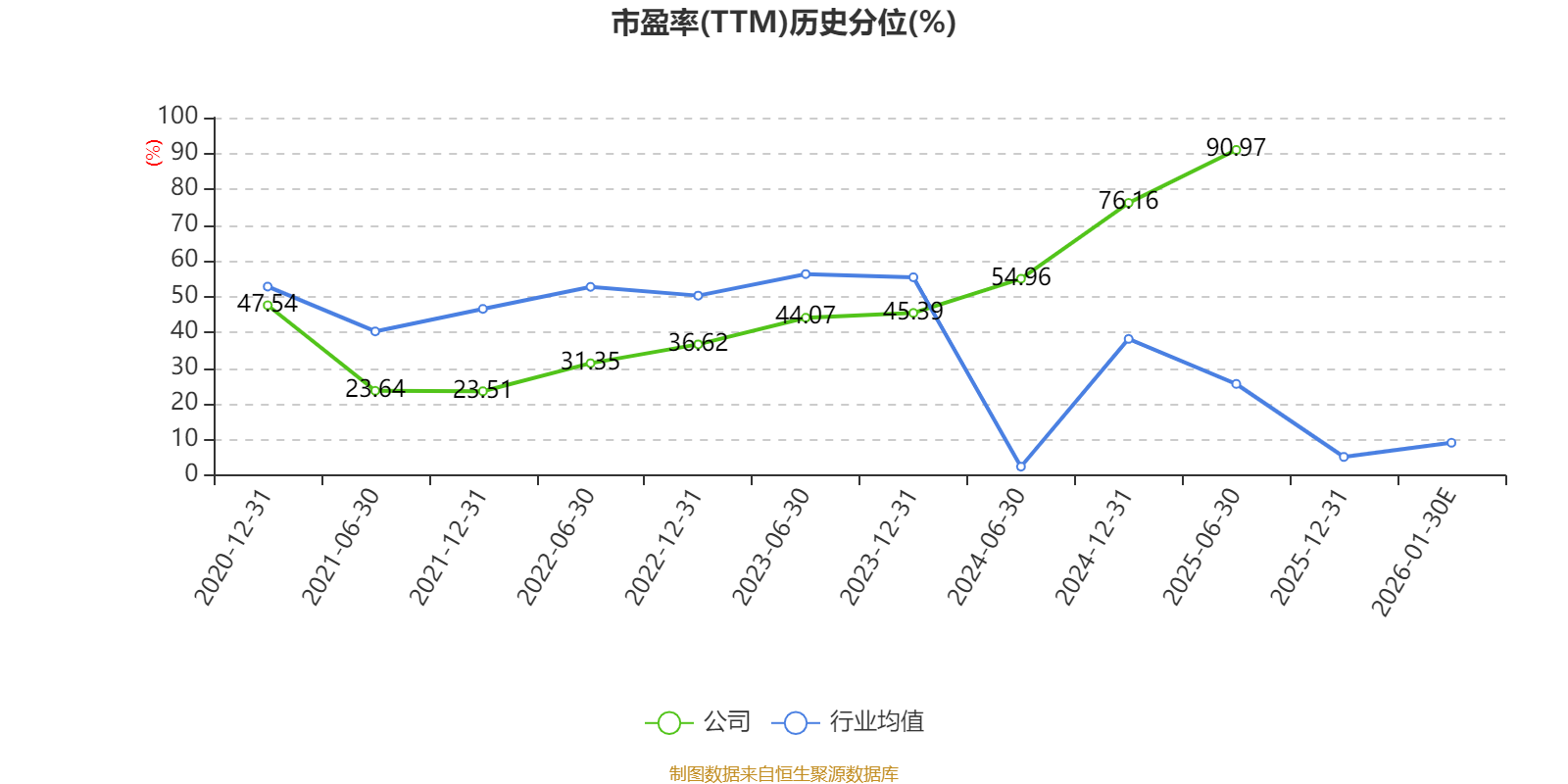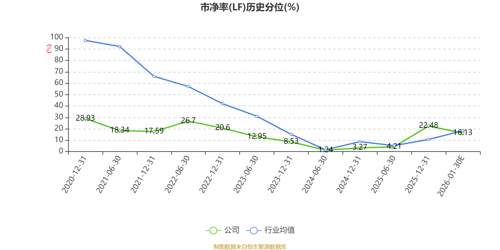 市盈率、市净率为负时,不显示当期分位数,会导致折线图中断。