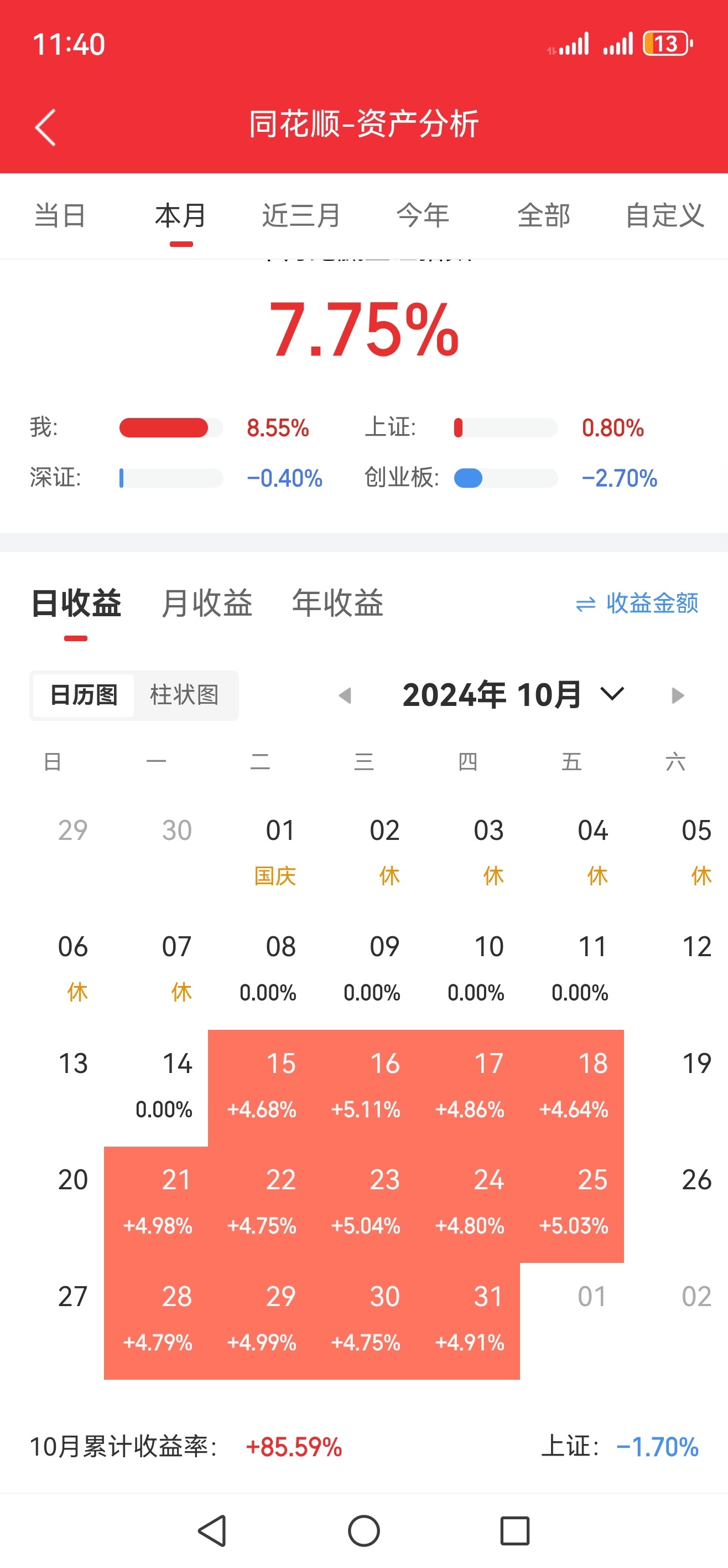 今天表现比较强。虽然就剩几万块持有,我昨天也算是卖飞的,怀念去年10月的日子,很