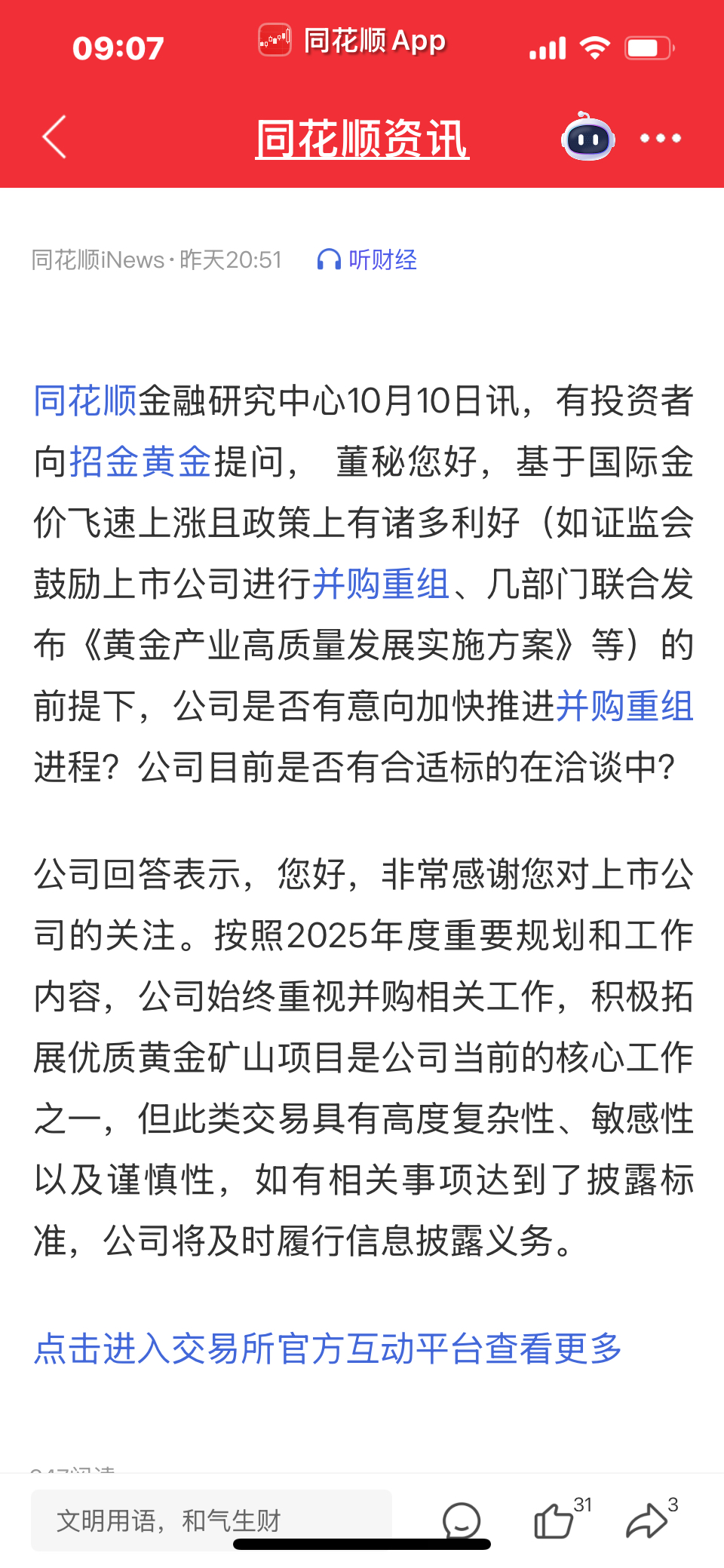 $招金黄金(SZ000506)$ 期待近期有利好消息…..