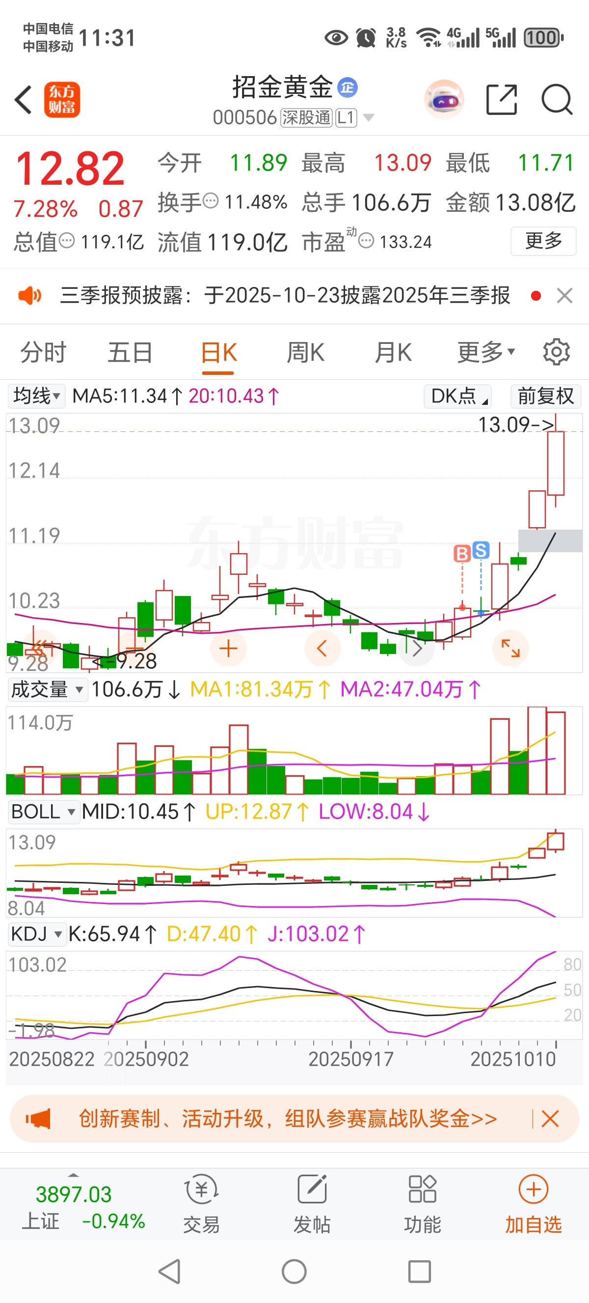 $招金黄金(SZ000506)$ 哦豁!拿不住,拿不住,真的拿不住,这能怪谁呢