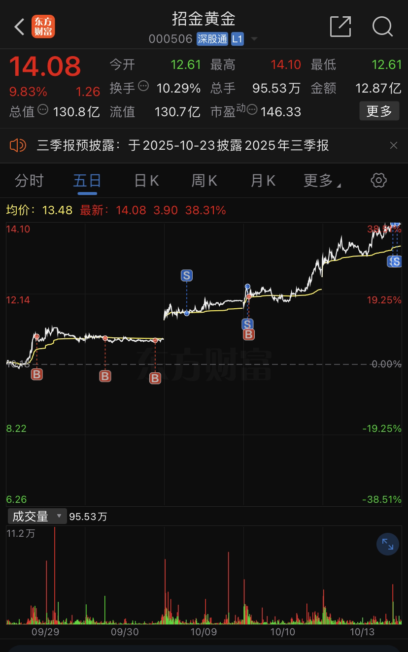 $招金黄金(SZ000506)$ 板上卖出大部分