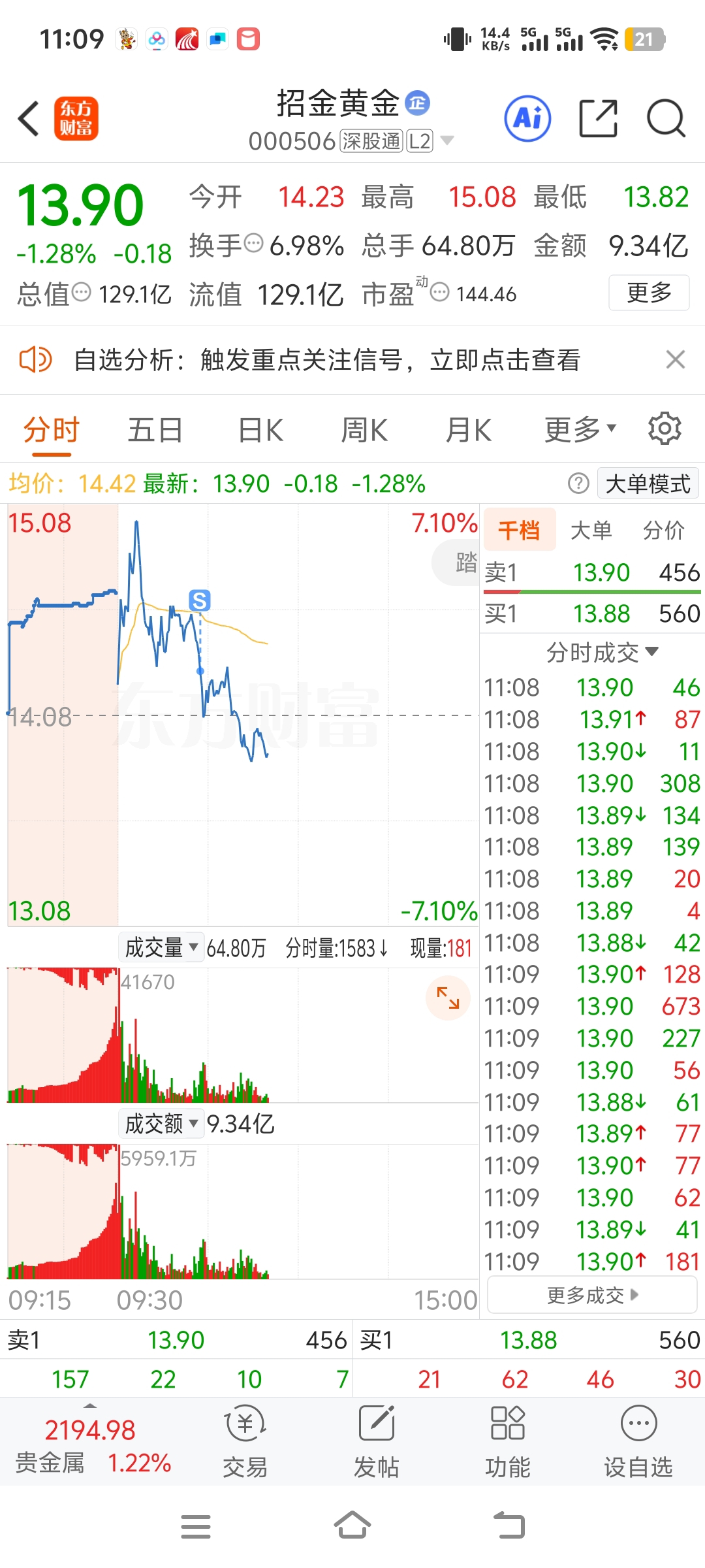 $招金黄金(SZ000506)$ 预期不符,持股230天,收益230%