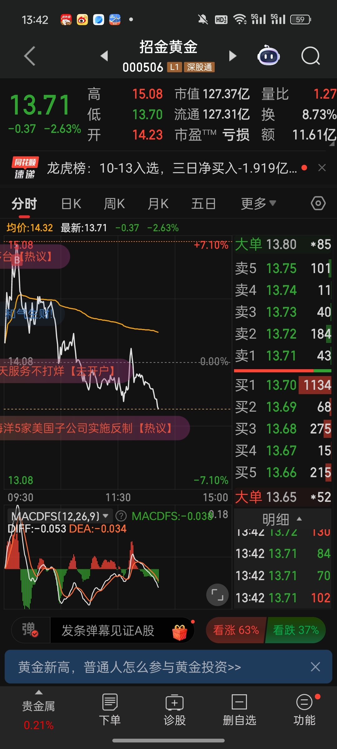 $招金黄金(SZ000506)$ 对不起,都怪我,把它买崩了