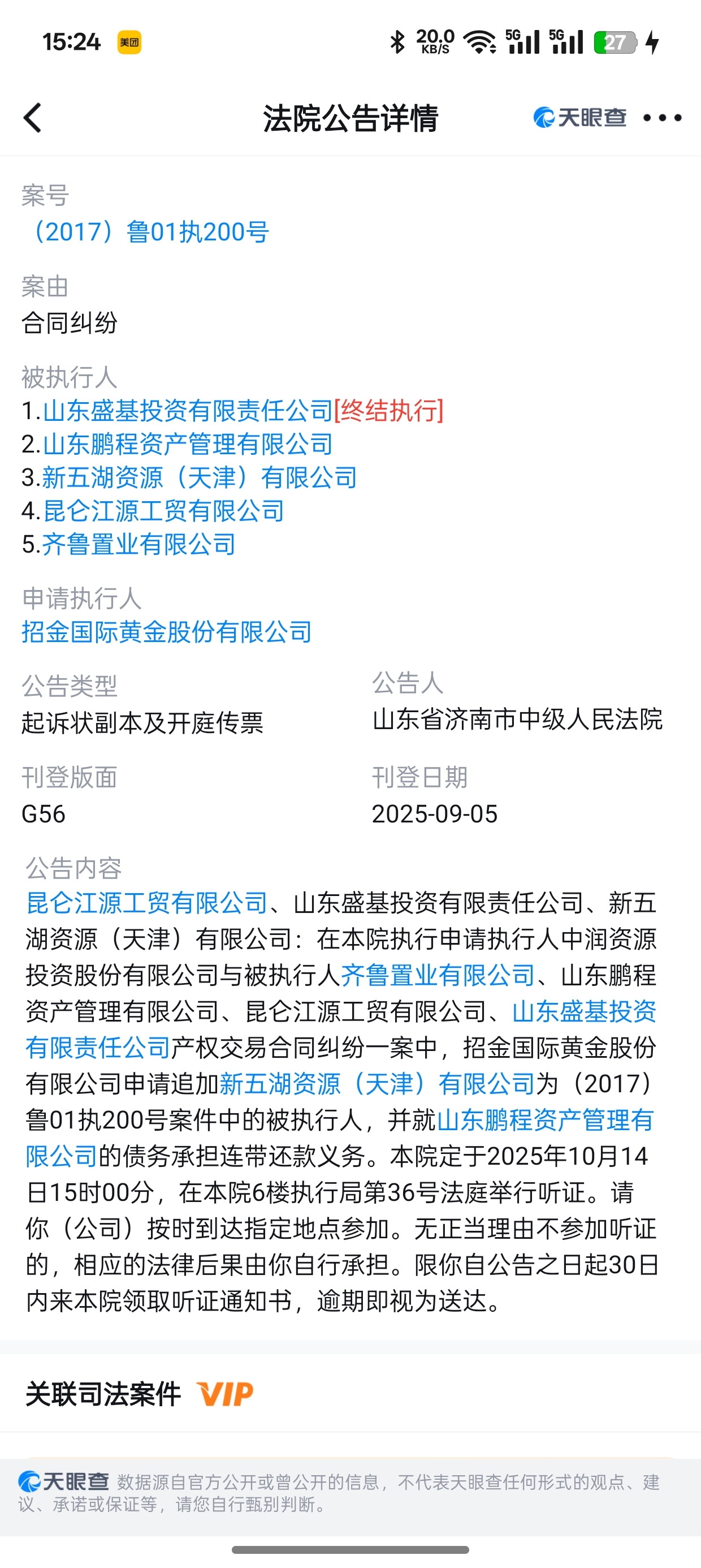 $招金黄金(SZ000506)$ 今天开庭,晚上会出公告吗?