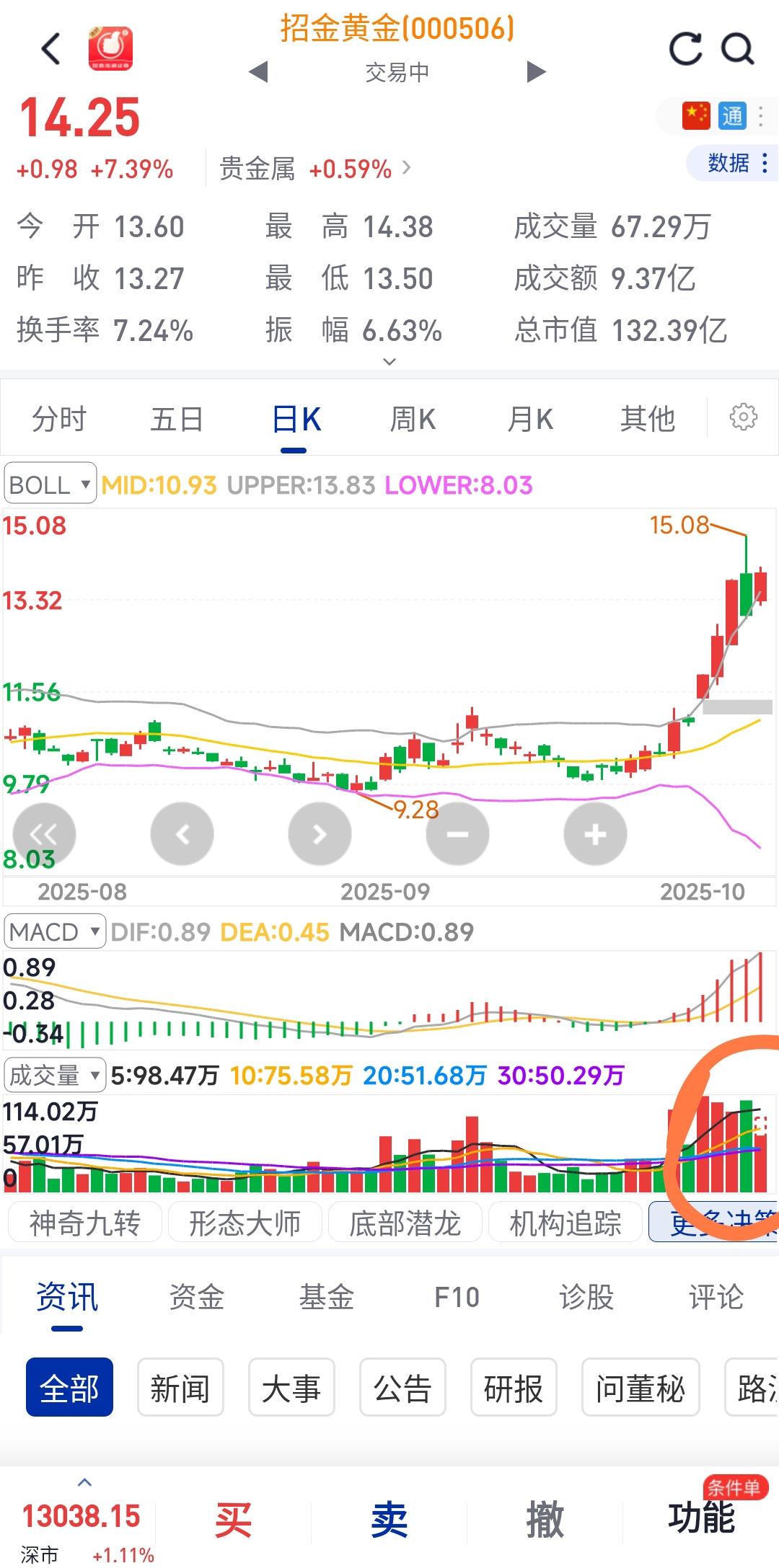 $招金黄金(SZ000506)$ 继续吸筹。大家可以看到,招金黄金经过这段时间的拉升,今天继续上涨,但是成交量却在减少,说明大家都捂盘惜售,庄家在想方设法吸筹,切记切记,你卖掉的每一股,都是将来后悔的一支穿心箭!