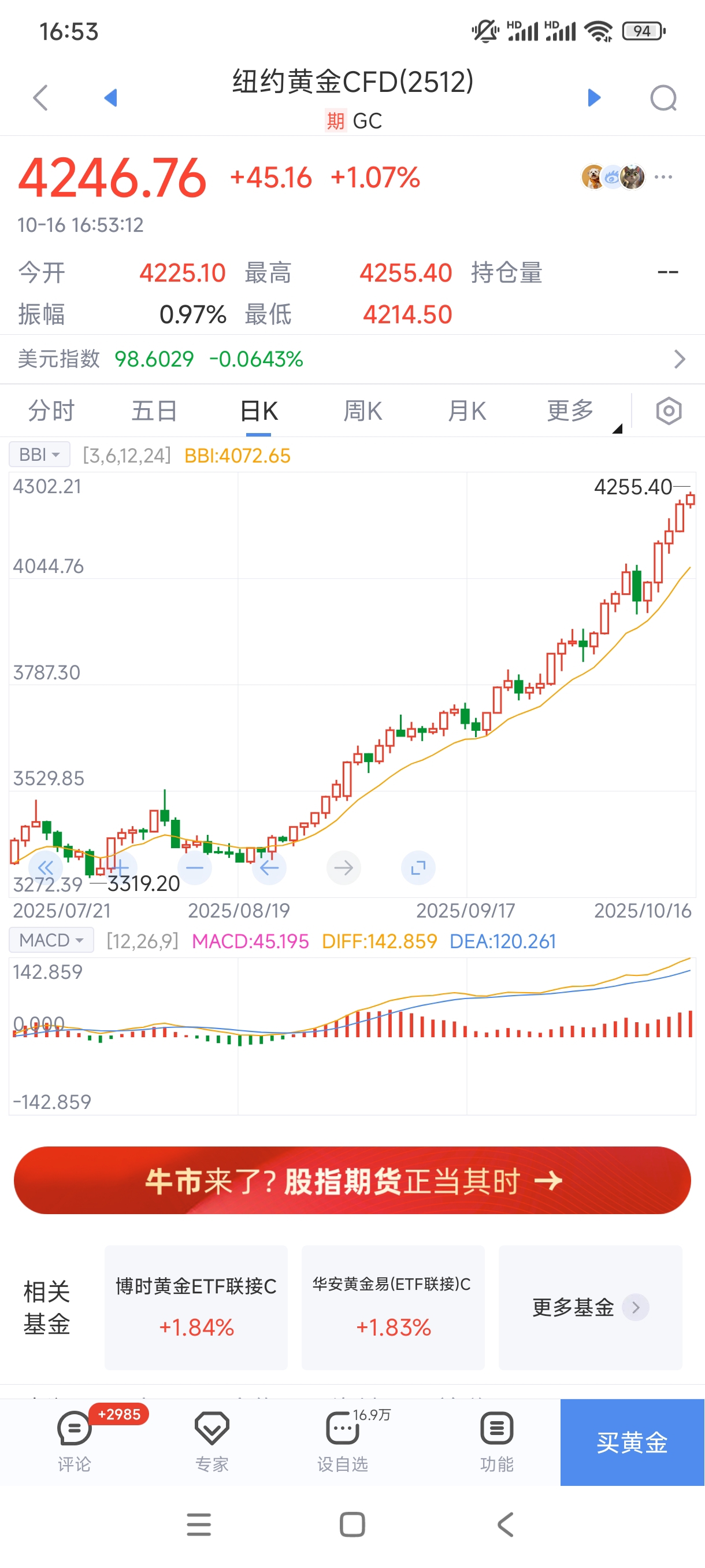 黄金奔着4300去了
