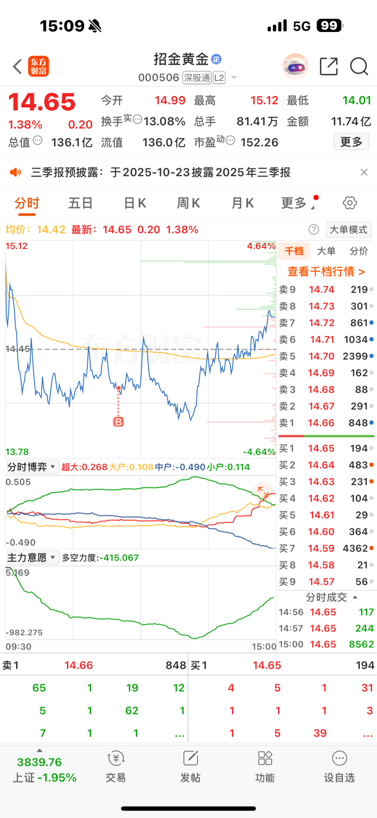 $招金黄金(SZ000506)$ 今天又回来拯救你们了 昨天给主力高位派发了筹码