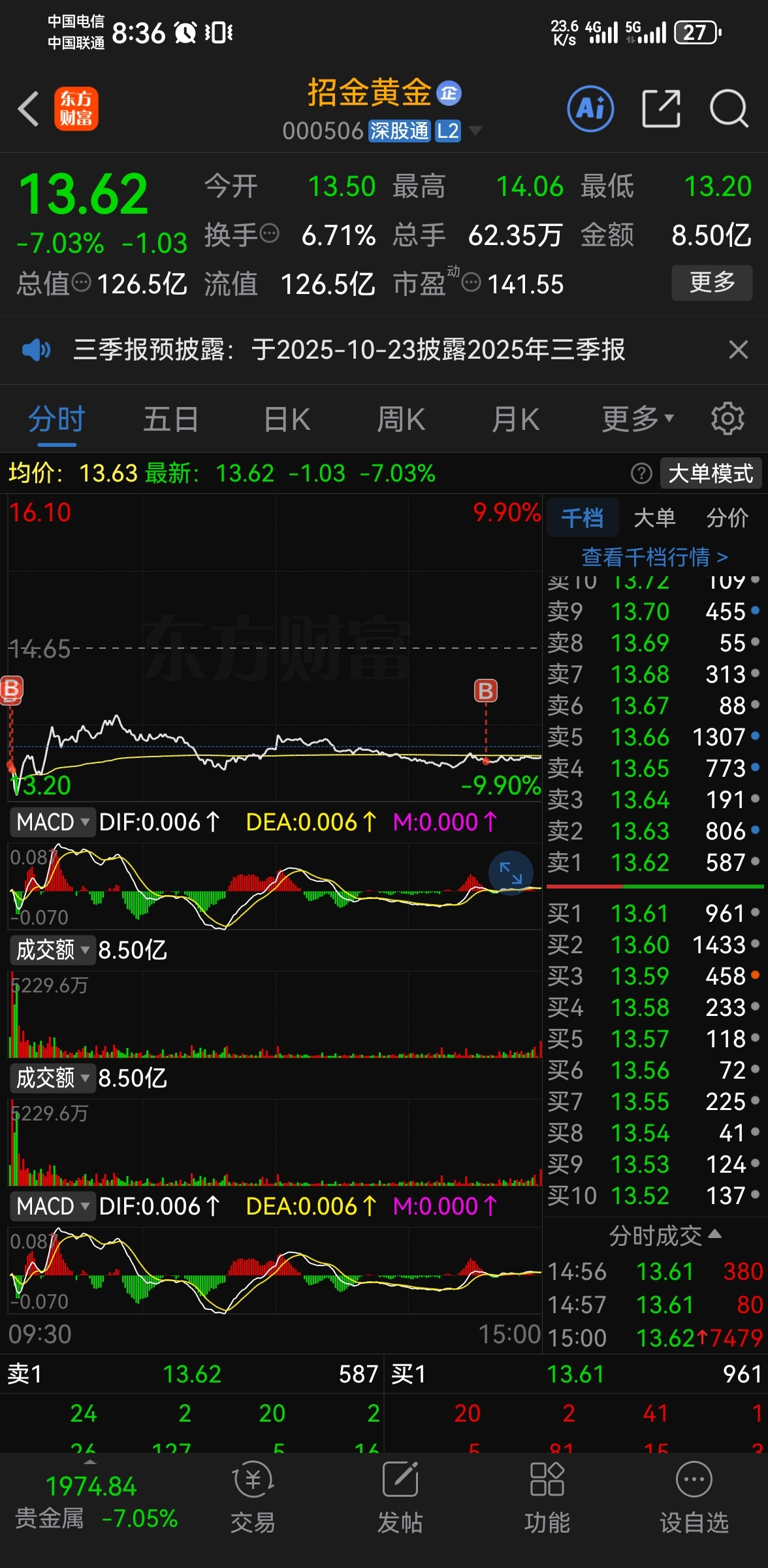 $招金黄金(SZ000506)$ 我不负你,请别复我