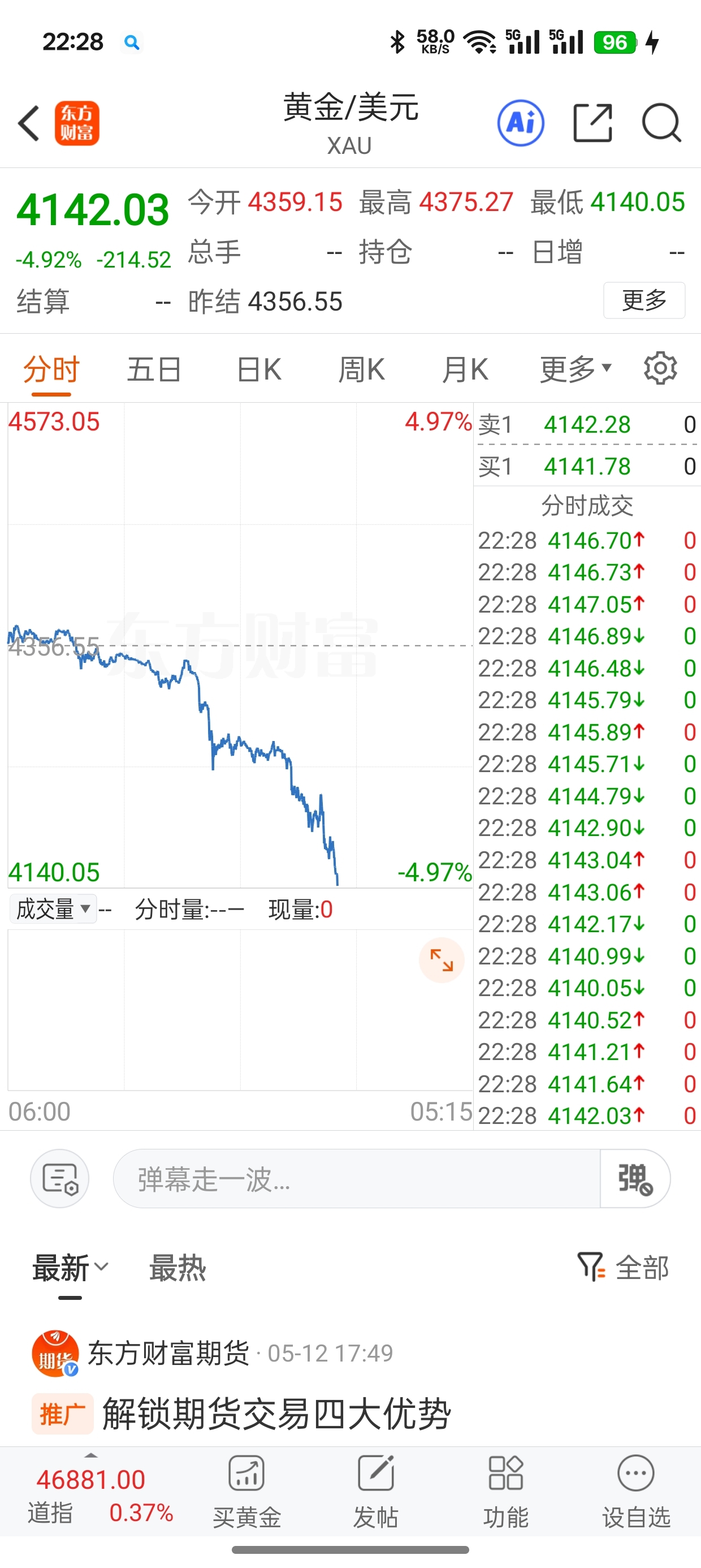 $招金黄金(SZ000506)$ 期货大跌5个点,真是开了眼了,