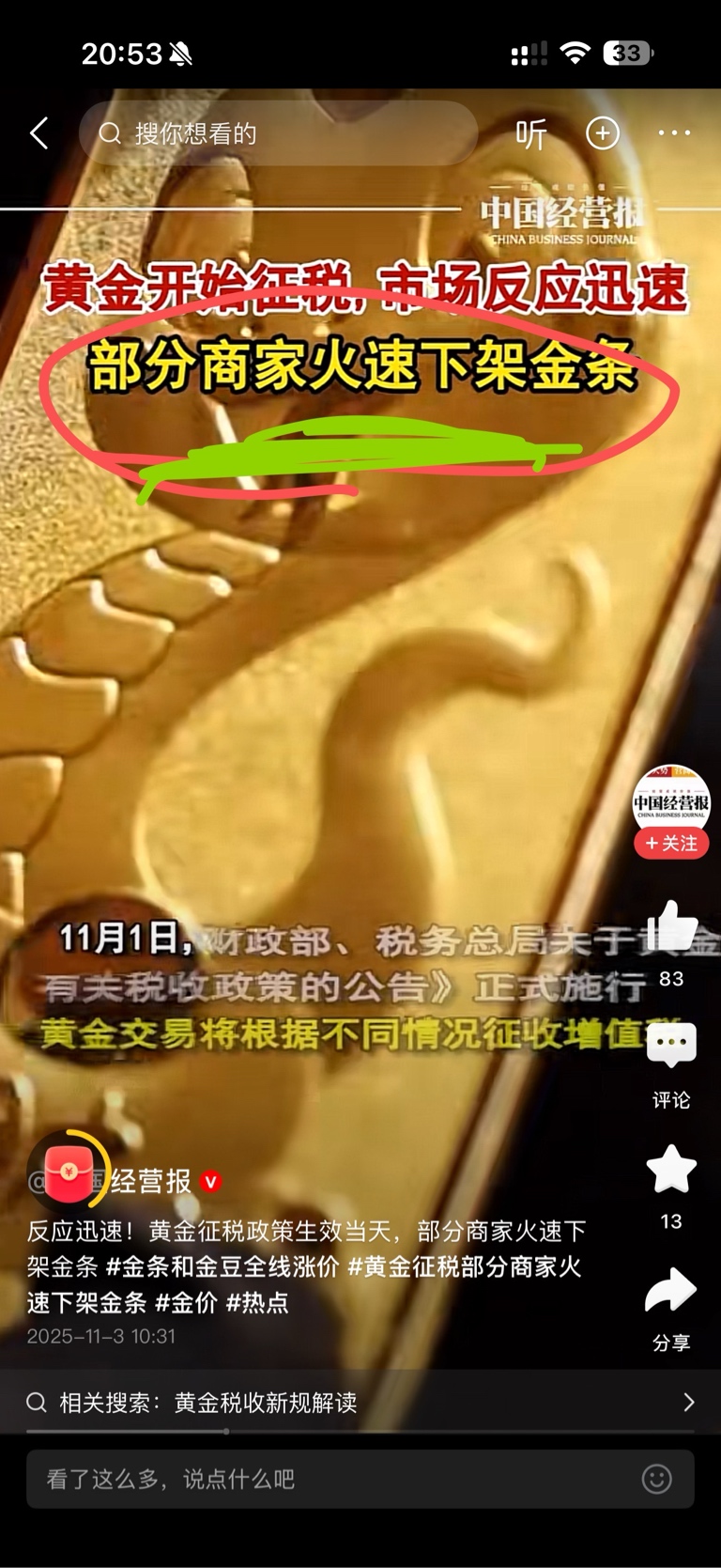$招金黄金(SZ000506)$ 我学历低,不太懂。如果征税导致黄金大跌,那商家应该抓紧抛,而不是下架,对吗?