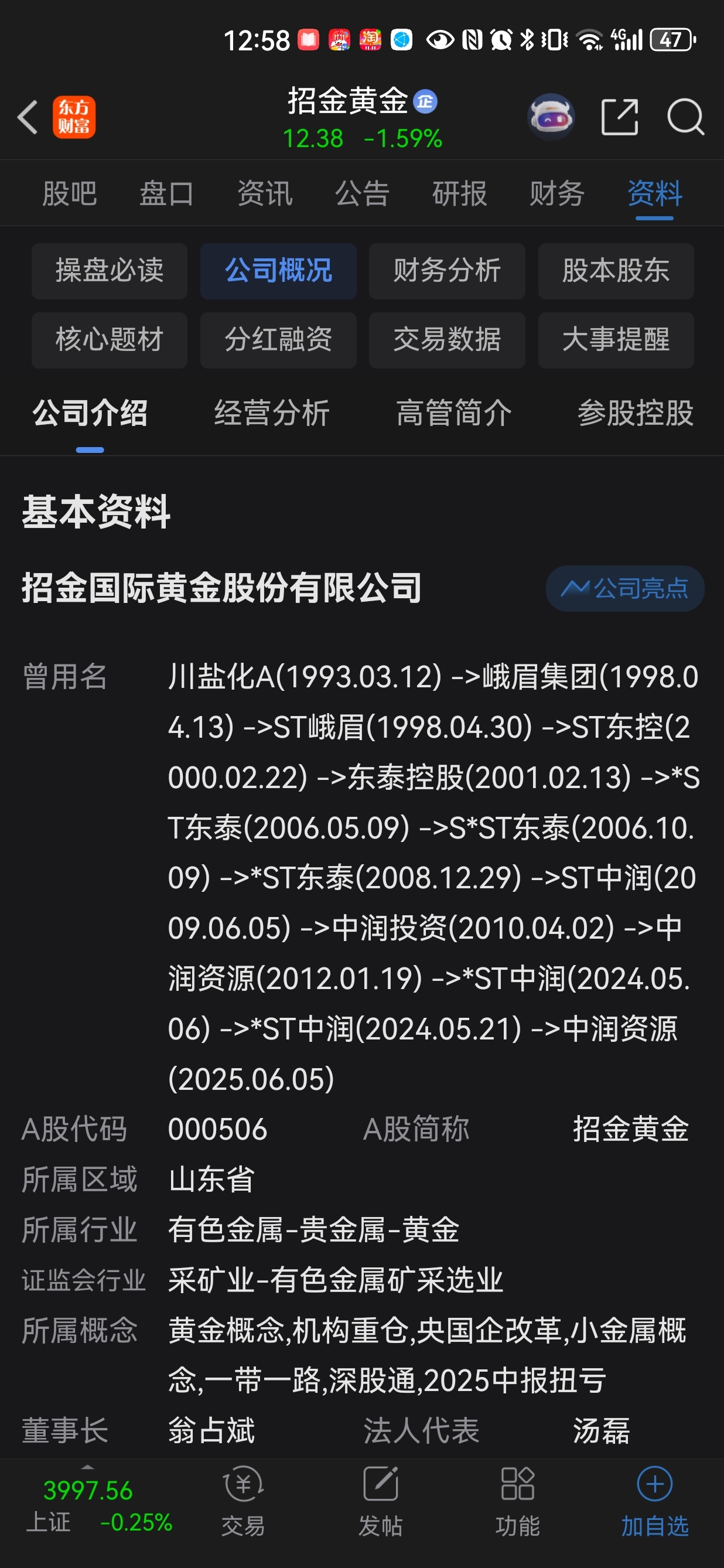 $招金黄金(SZ000506)$ 老千股