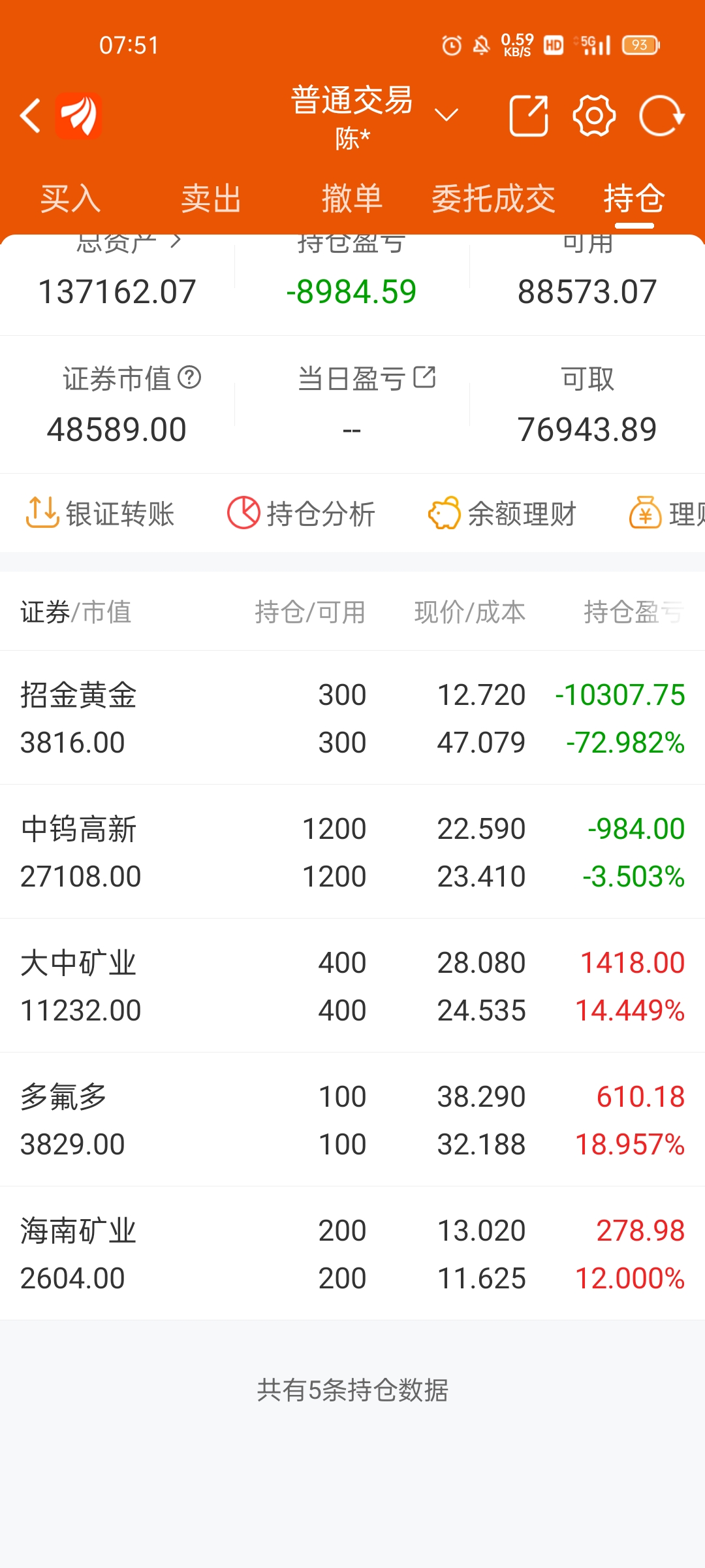 $招金黄金(SZ000506)$ 兄弟们扛不住了,为了追几毛钱损失上万