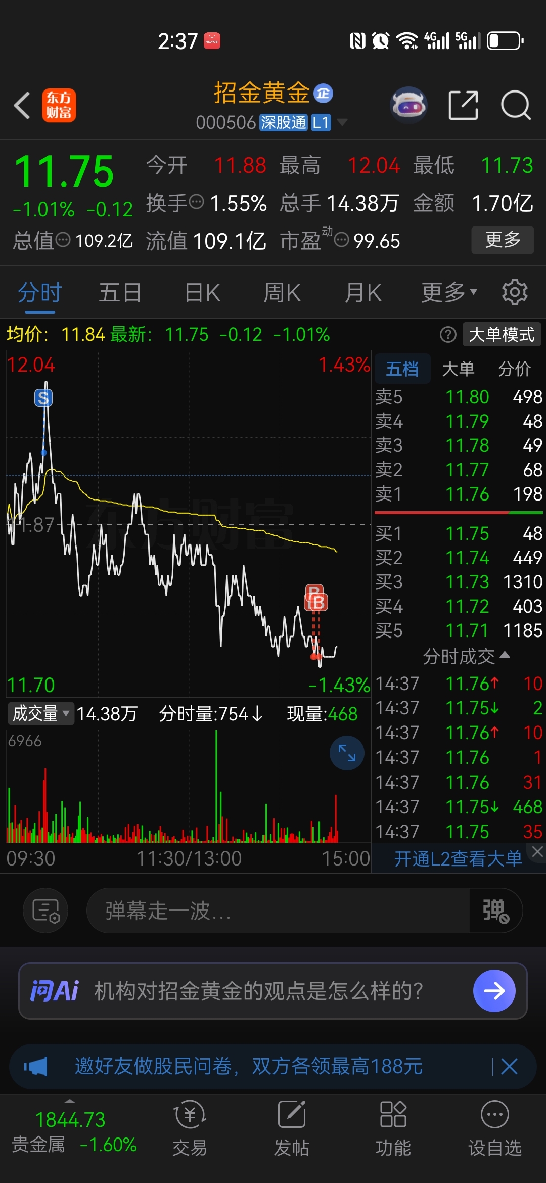 $招金黄金(SZ000506)$