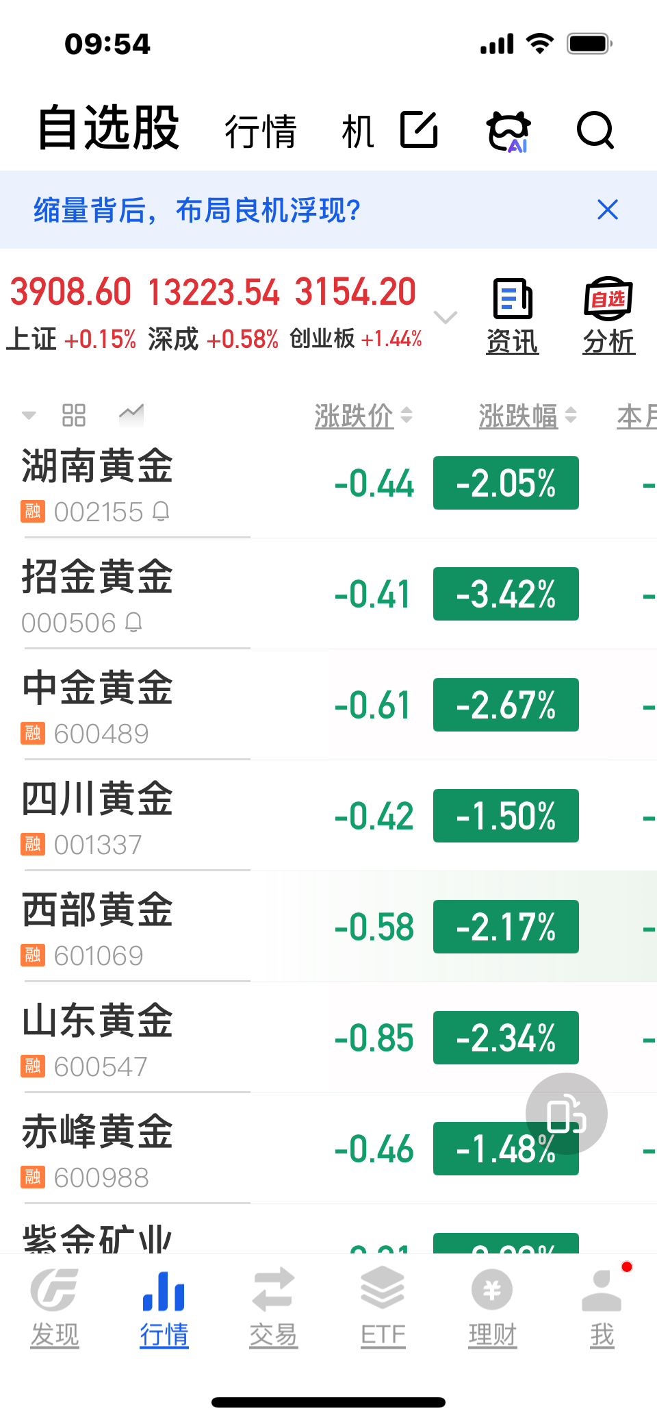 $招金黄金(SZ000506)$ 跌幅居首!
