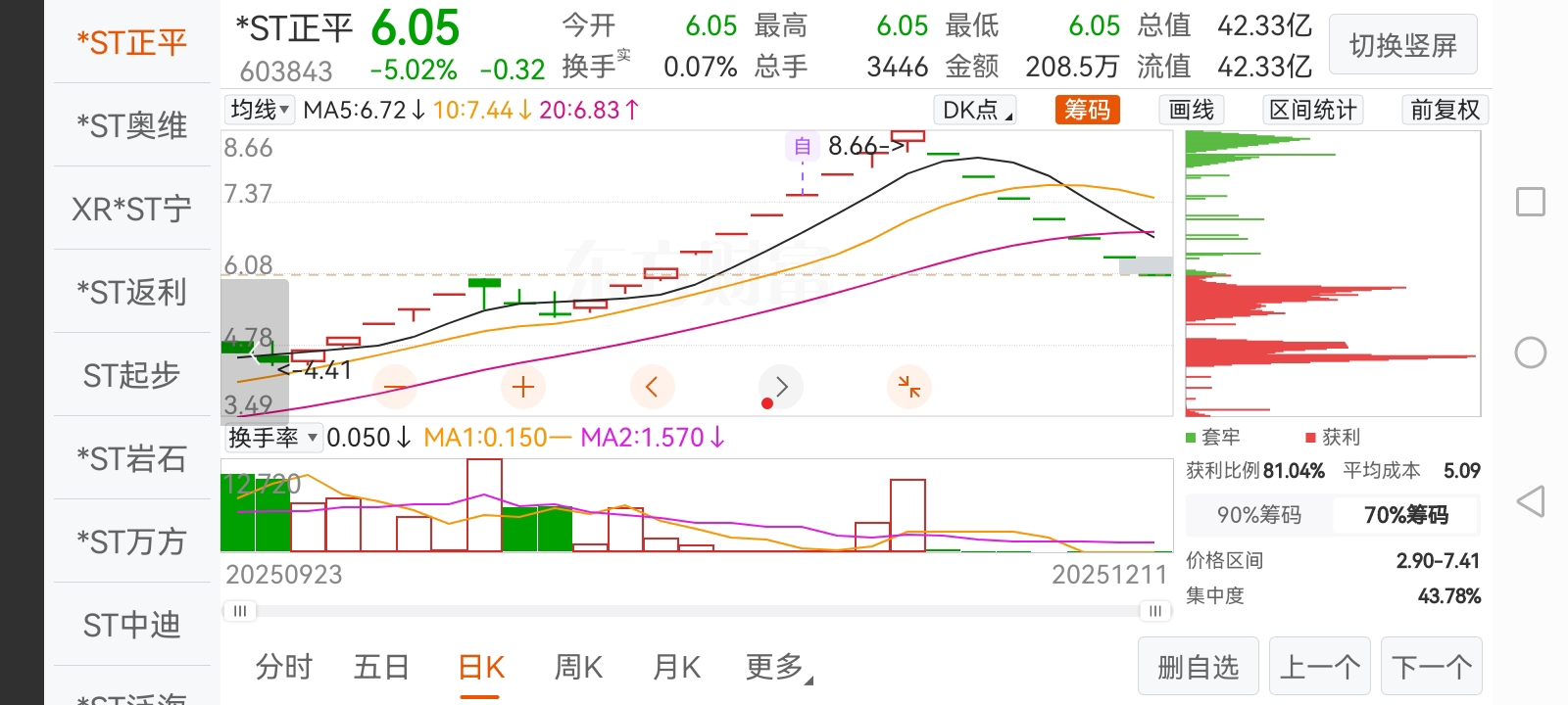 $招金黄金(SZ000506)$ $*ST东易(SZ002713)$ $*ST正平(SH603843)$ 还是正平的庄家善良,不像东易的庄家第四个跌停就撬开板骗我抄底!正平连续一字跌停的越狠反弹才会越大!当年中润19个一字跌停才强势反弹!只有正平像中润(招商黄金)那样十几个一字跌停板才会有个像样的反弹!正平第十个跌停板建一层仓,十二板补仓,十四板再补仓,抄底千万别一次梭哈!