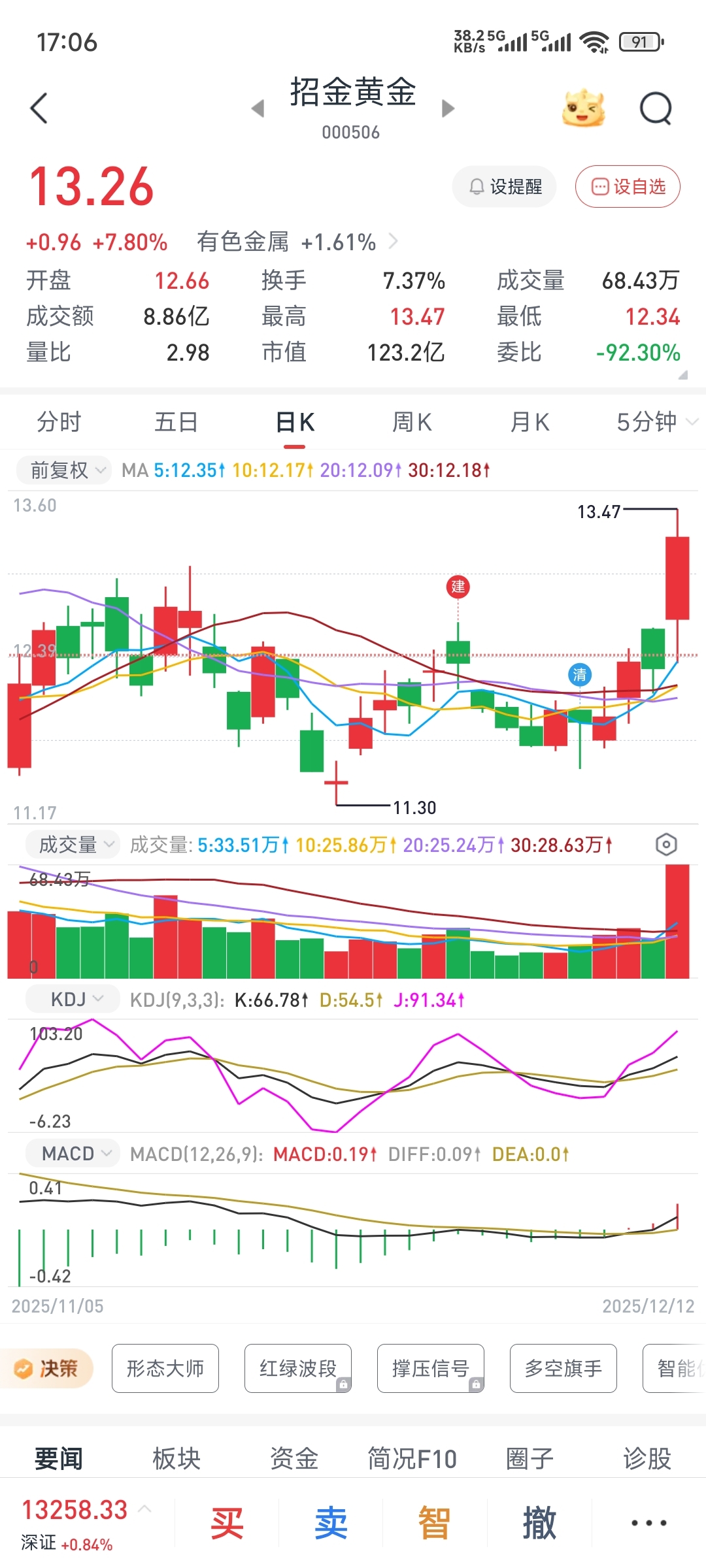 $招金黄金(SZ000506)$ 主力逗我玩,我卖了就疯涨