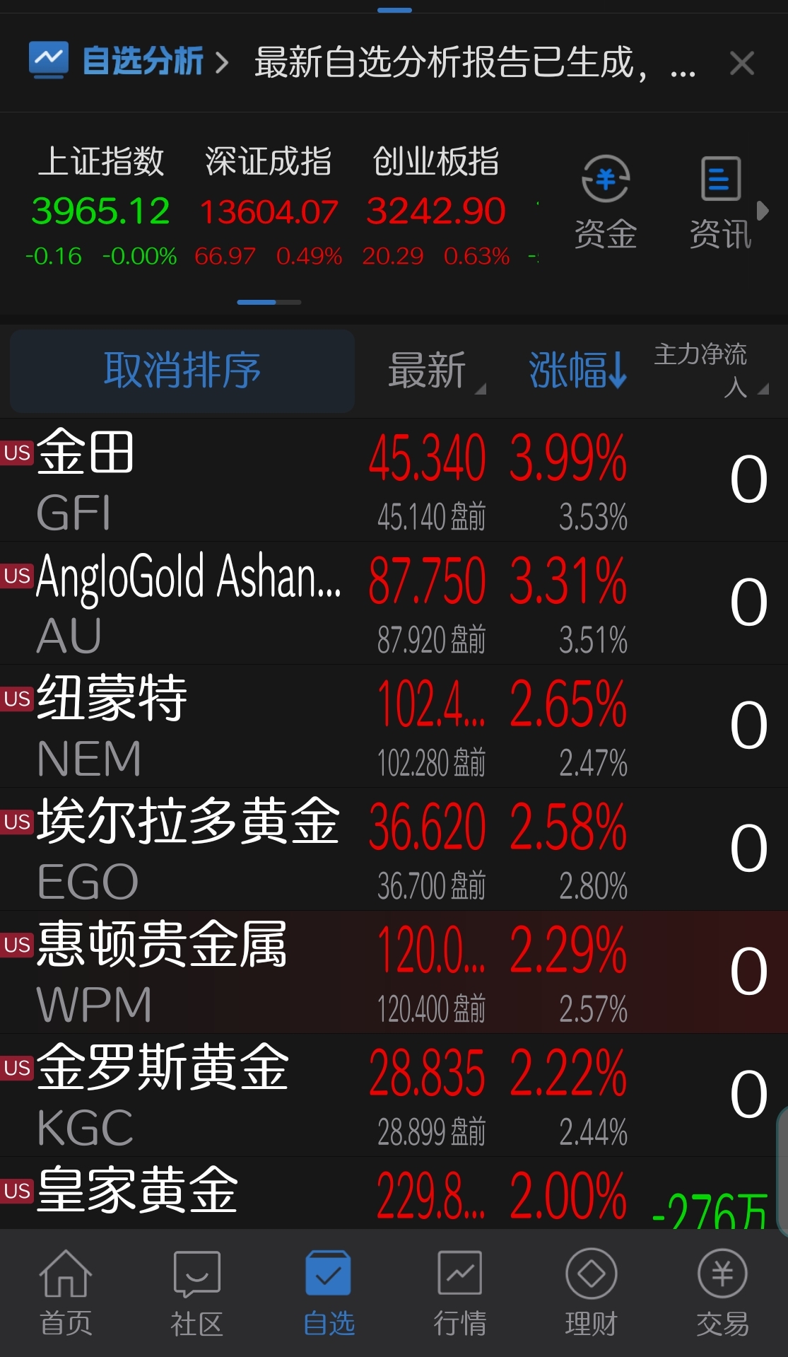 $招金黄金(SZ000506)$ 美国黄金股票大涨