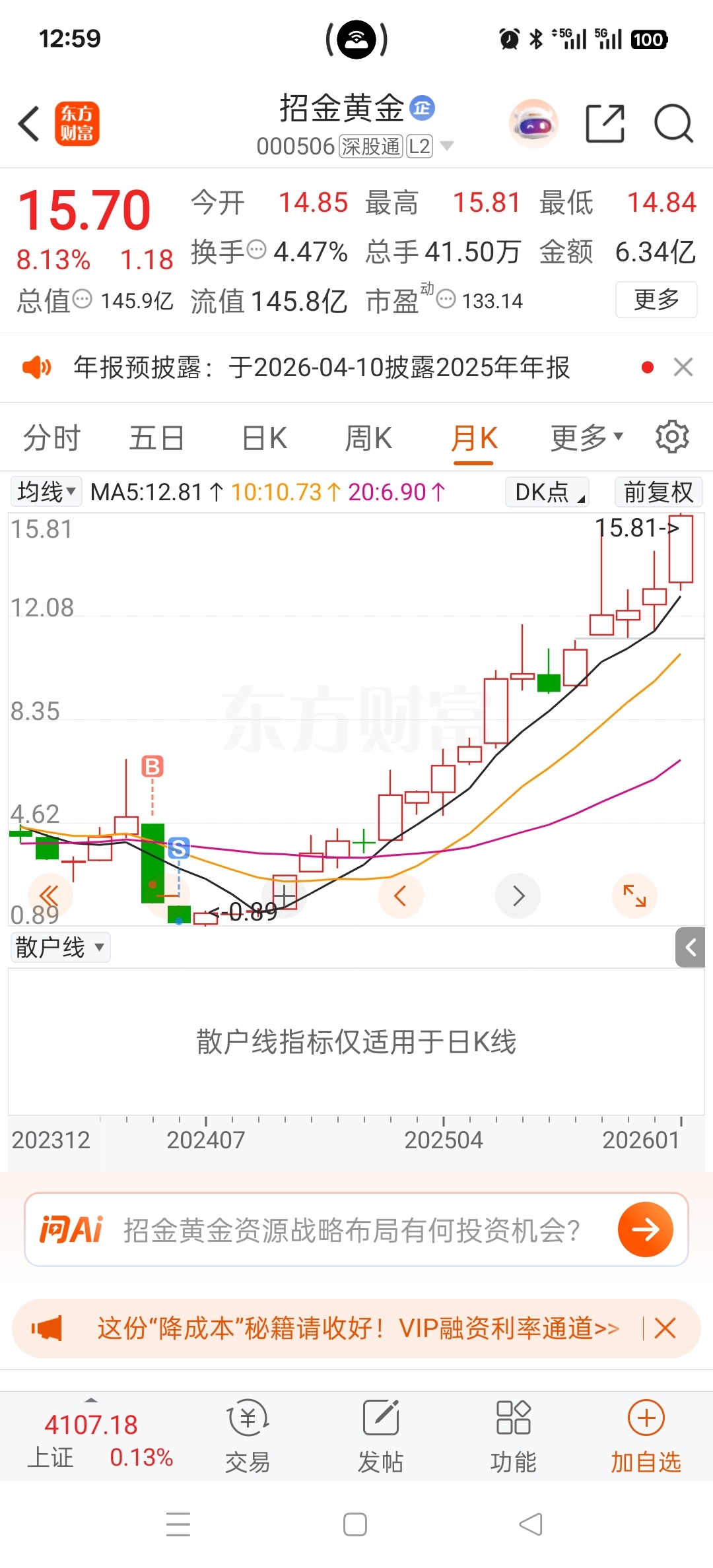 $招金黄金(SZ000506)$ 人掌握不了认知以外的财富