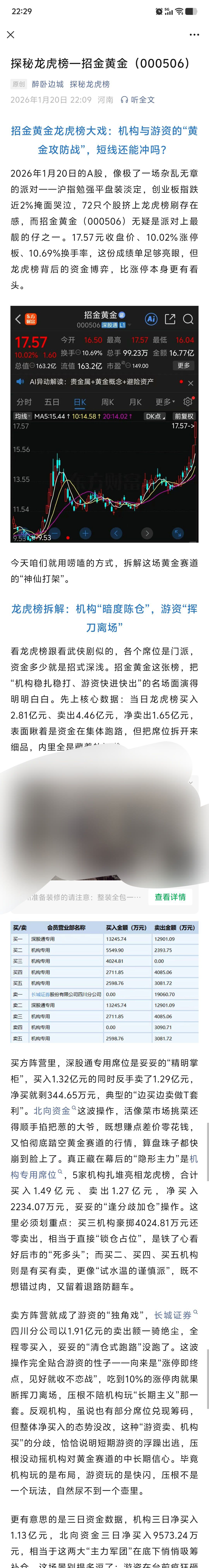 $招金黄金(SZ000506)$