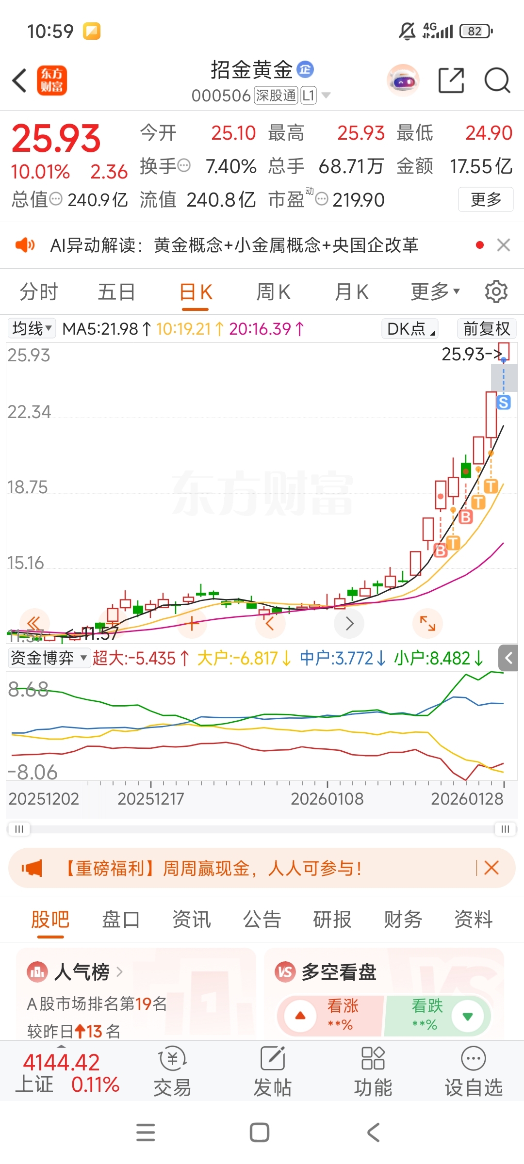 $招金黄金(SZ000506)$ 好好拿住挣1万至少,瞎折腾,只挣2k还没了筹码。我傻。