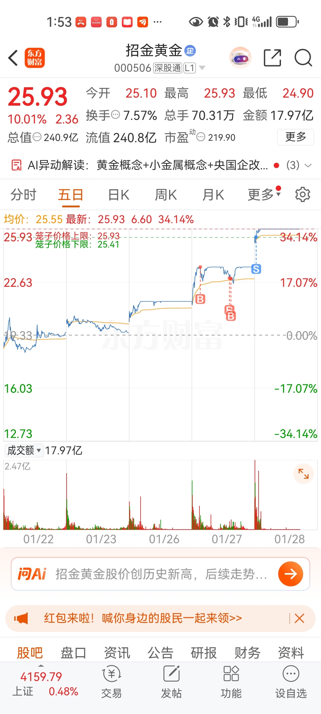$招金黄金(SZ000506)$ #炒股日记# #强势机会# #实盘记录#