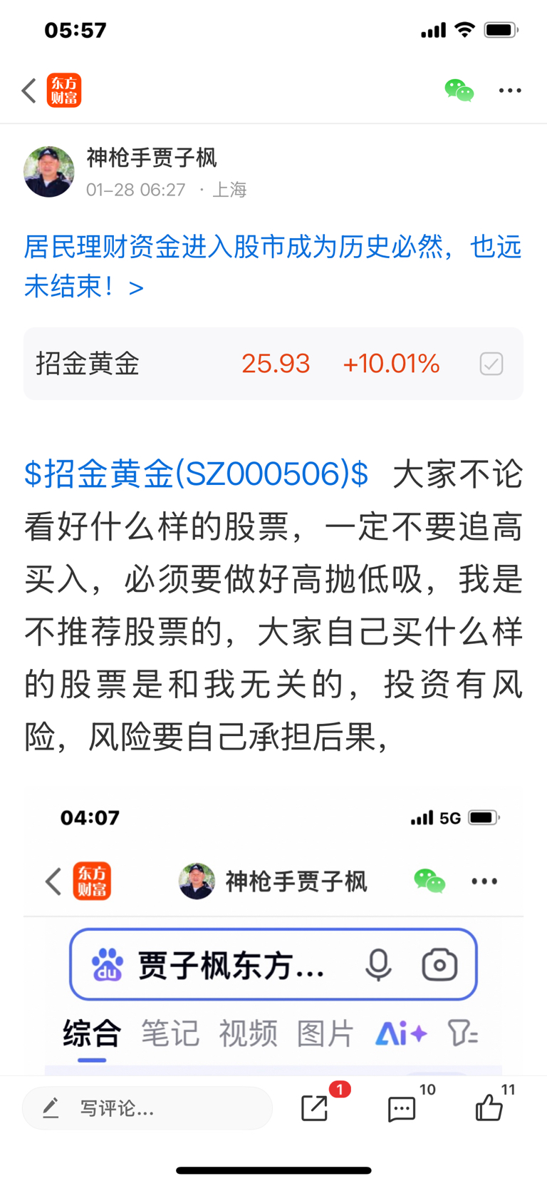 $招金黄金(SZ000506)$ 大家不要追高买入,必须要做好高抛低吸,我是不推荐股票的,大家不要跟我买卖股票,大家自己买什么样的股票是和我无关的,我是免费和大家一起交流股票,我是和大家一起学习的,我的观点仅供参考,不构成任何投资建议,投资有风险,风险要自己承担后果,