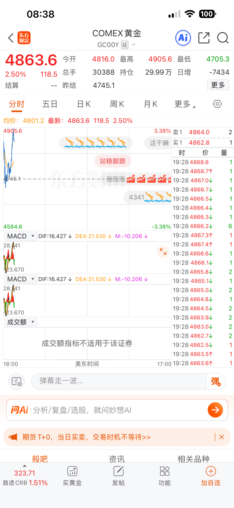 $招金黄金(SZ000506)$ 好家伙,国际杀完多头开始暴打空头了!白银上涨百分之十,黄金一度反弹上涨突破4905!