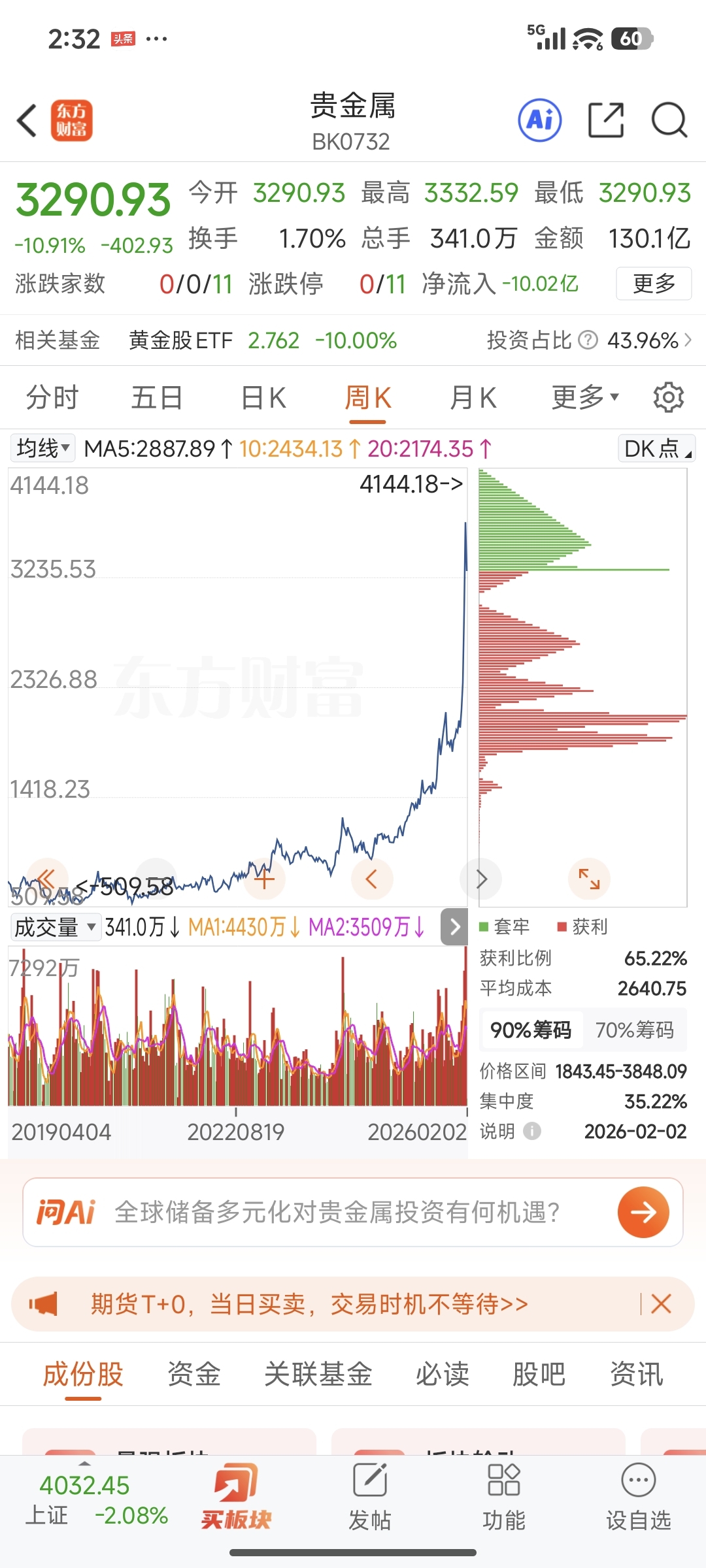 板块跌停见证历史了,估计从来没有过,没想到这波来的这么大,这不是黄金,这是比特币