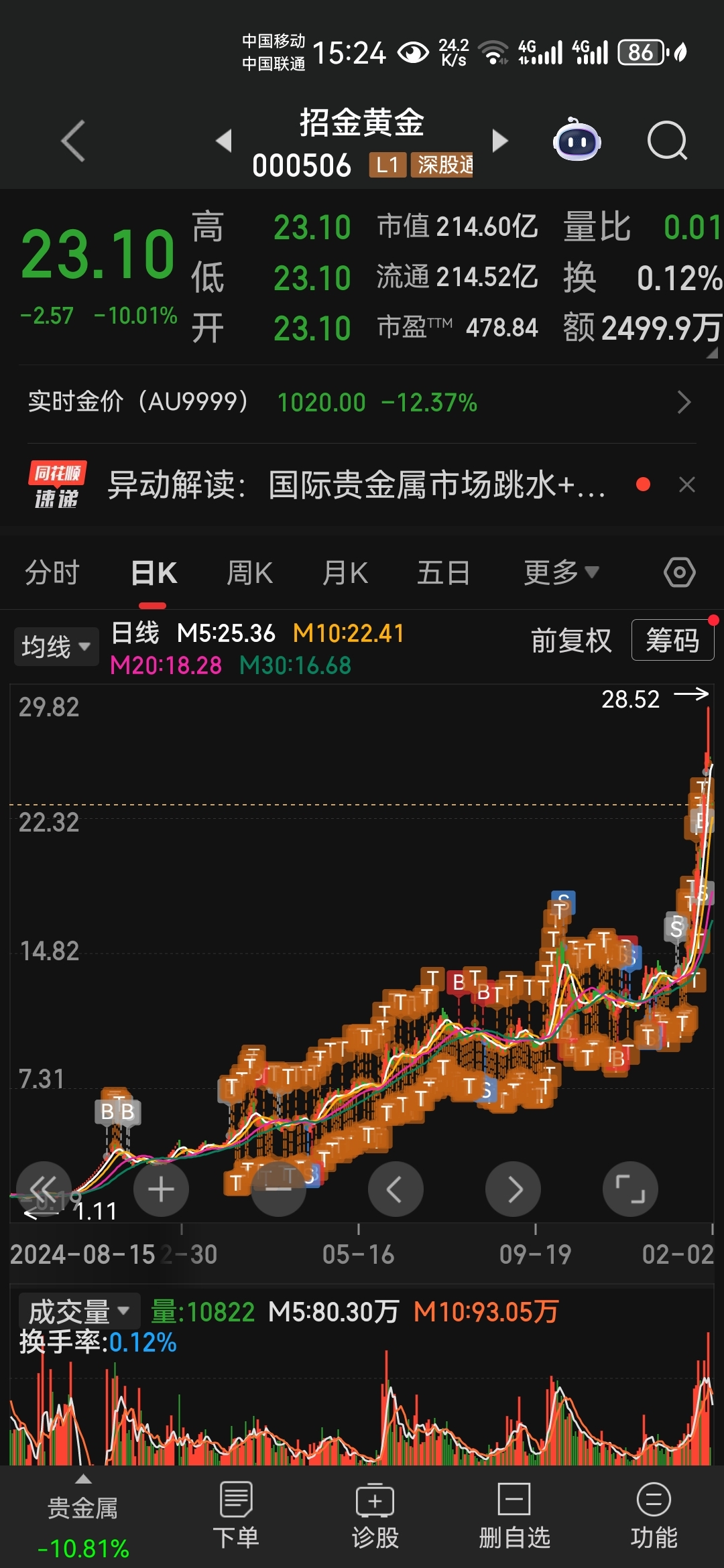 $招金黄金(SZ000506)$ 小招已死,有事烧纸。