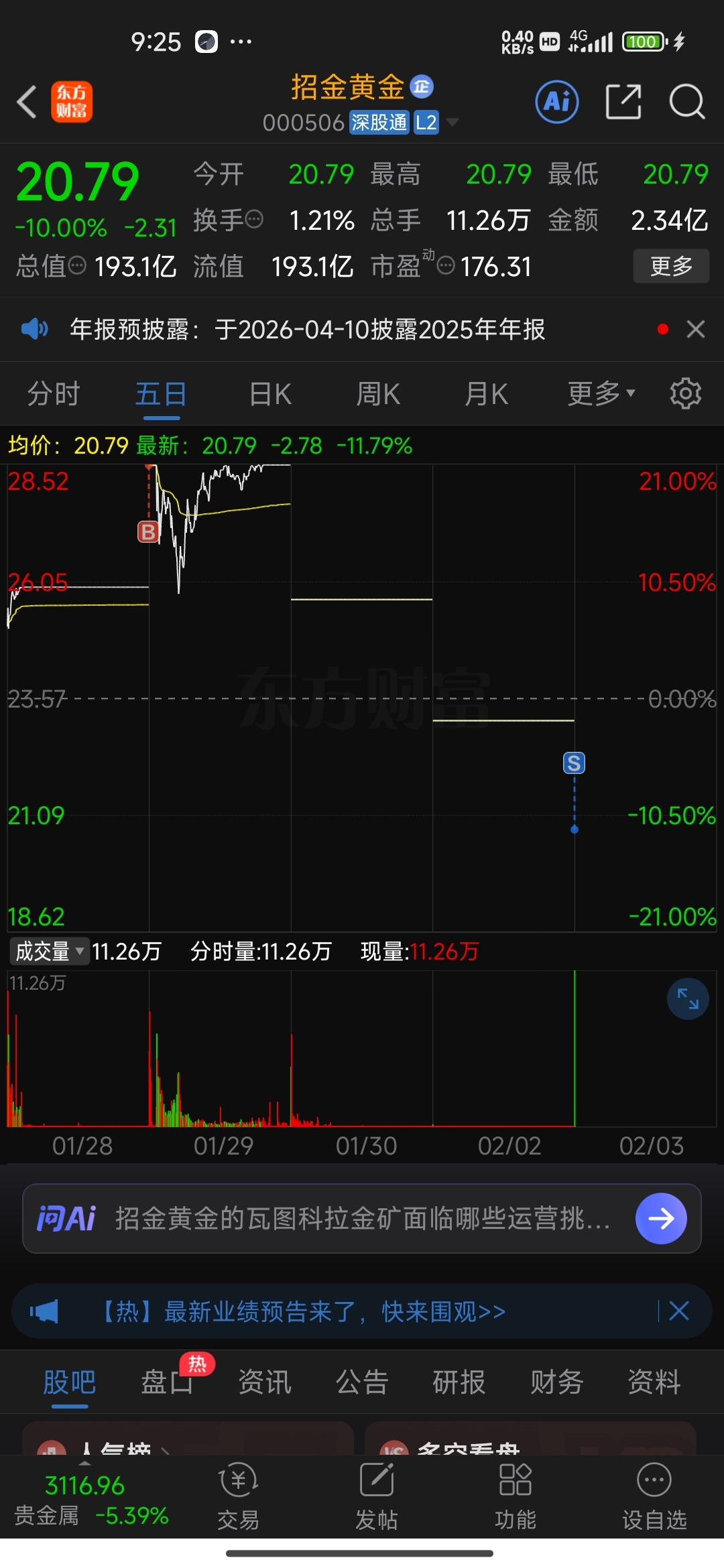 $招金黄金(SZ000506)$ 排队进去,排队出来,一月三十号犹豫一下开盘前没挂卖单后面挂再也出不来,深刻教训,后面在怎么涨跟我没关系,留下的发财