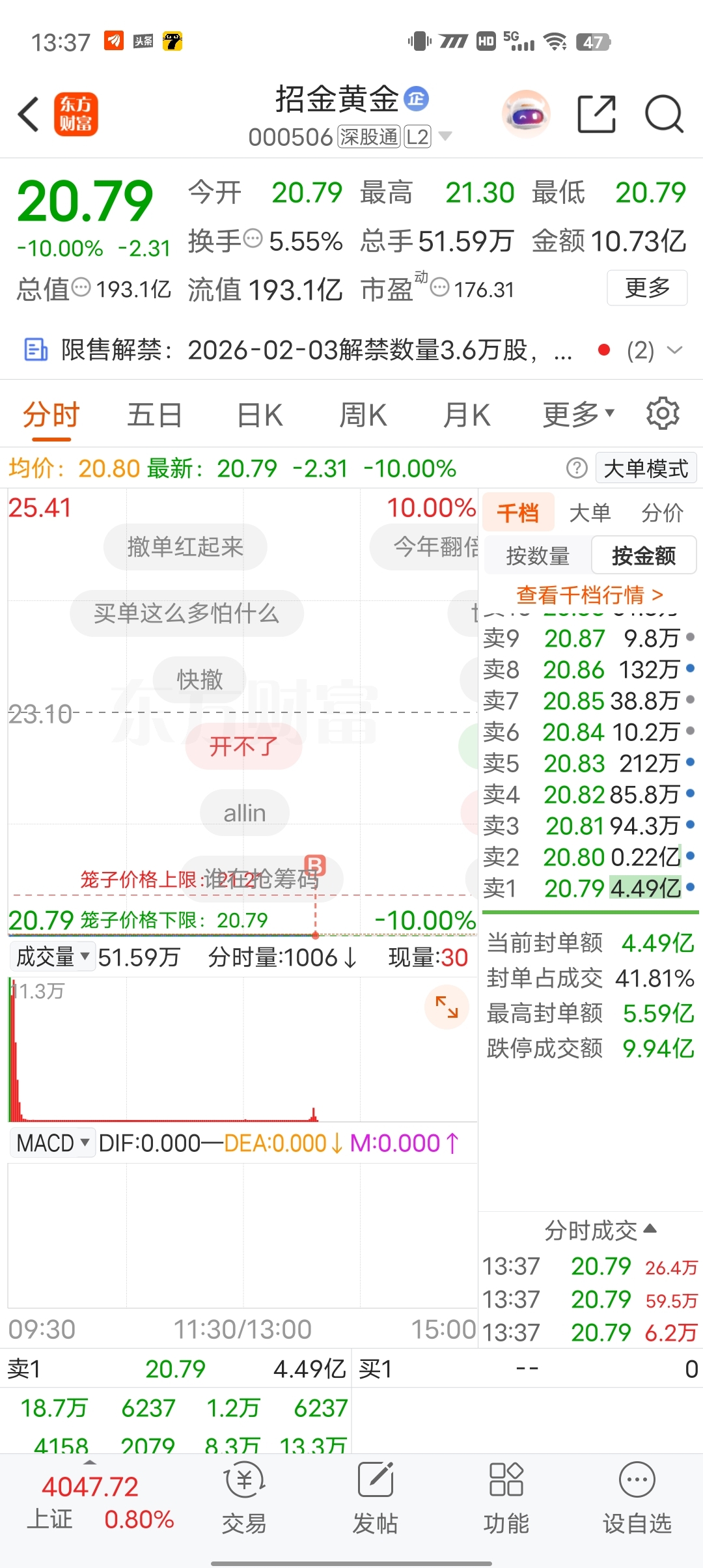 温馨提示: 1.根据《证券法》规定,禁止编造、传播虚假信息或者误导性信息,扰乱证券市场;2.用户在本社区发表的所有资料、言论等仅代表个人观点,与本网站立场无关,不对您构成任何投资建议。用户应基于自己的独立判断,自行决定证券投资并承担相应风险。《东方财富社区管理规定》