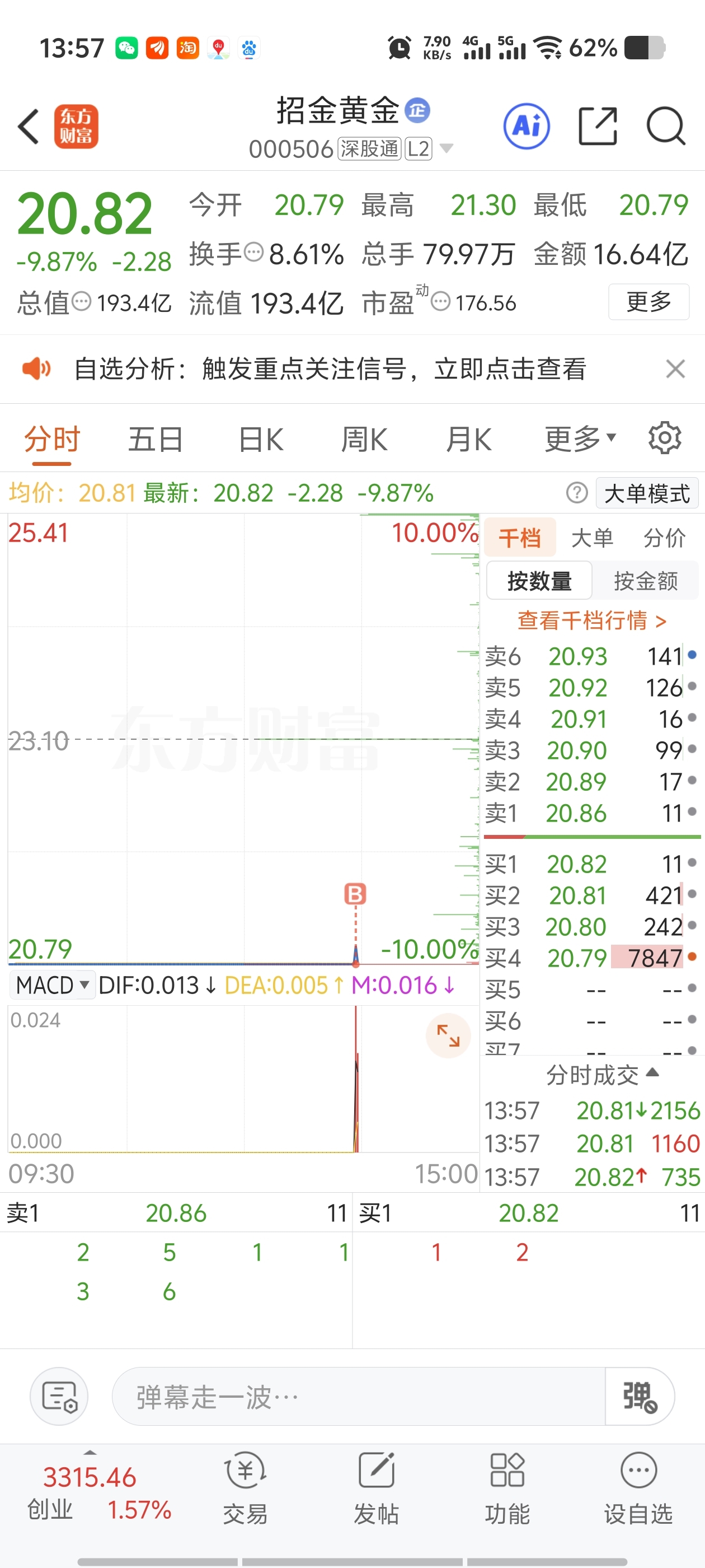 $招金黄金(SZ000506)$